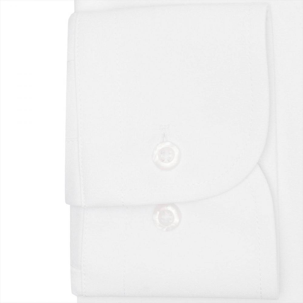 上品で洒落感漂う織柄の白シャツは なじみやすくビジネスシーンで活躍 してくれ、ネクタイとの相性も◎です。