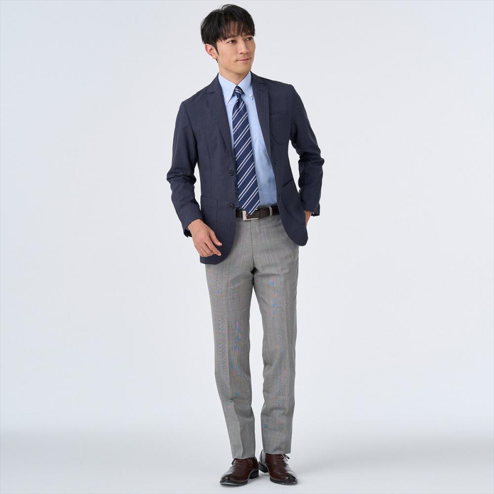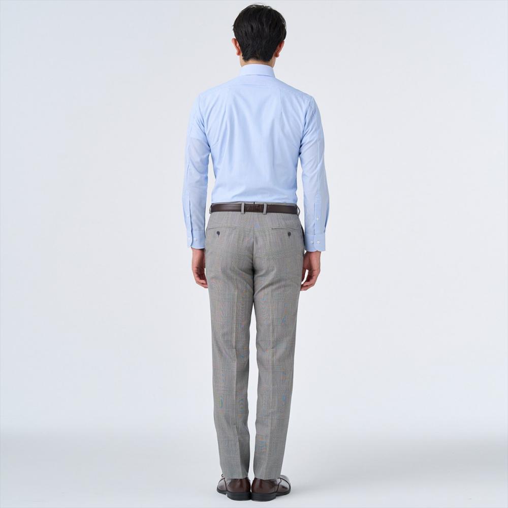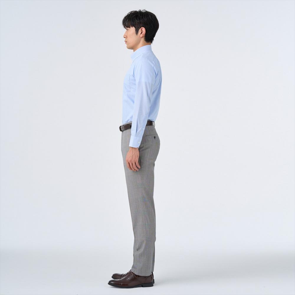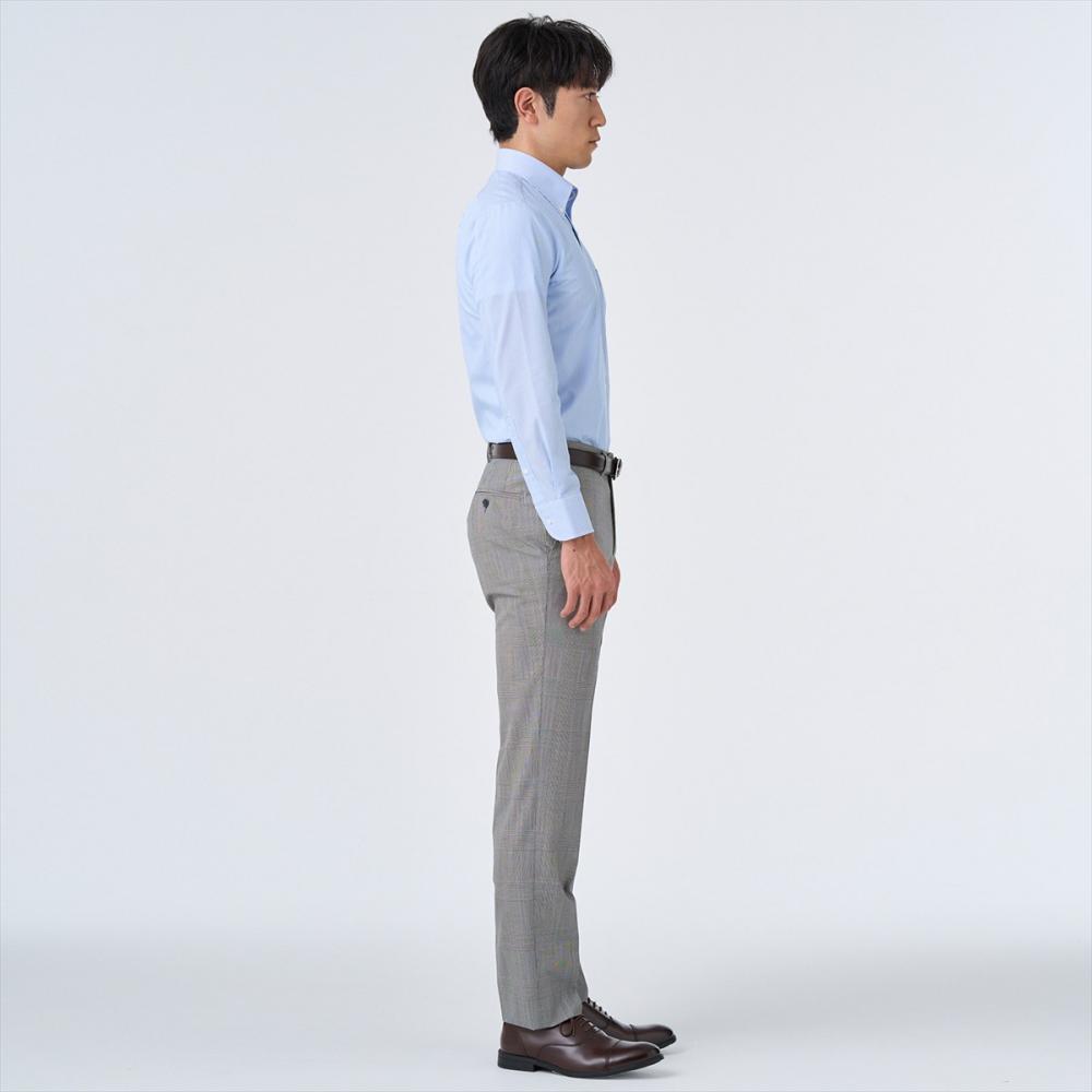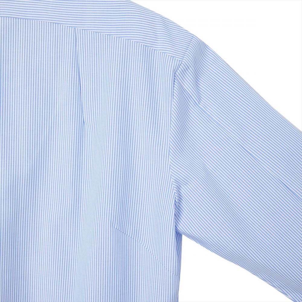 ノータイでの着用をイメージしたボタンダウンシャツなので、すっきりとしたラインを強調するために通常サイズと比べてすっきりとしたサイズ感に調整しました。