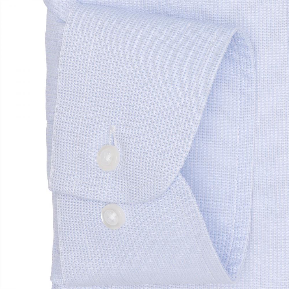 爽やかで清潔感漂うブルー織シャツは なじみやすくビジネスシーンで活躍 してくれ、ネクタイとの相性も◎です。