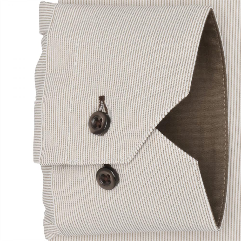 台衿とカフス裏の別布使いに色ボタンを 同系色に統一しながらも、アクセントを 添えた一枚は個性ある衿元を演出します。
