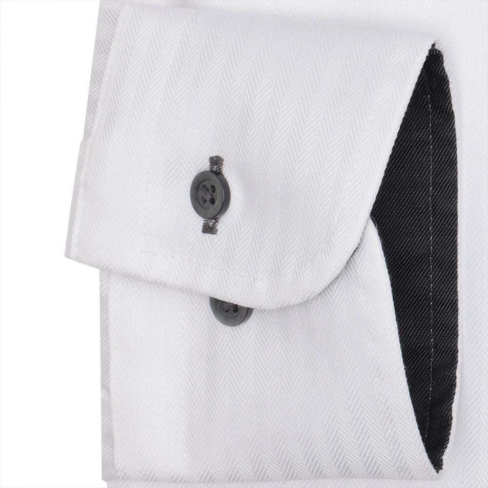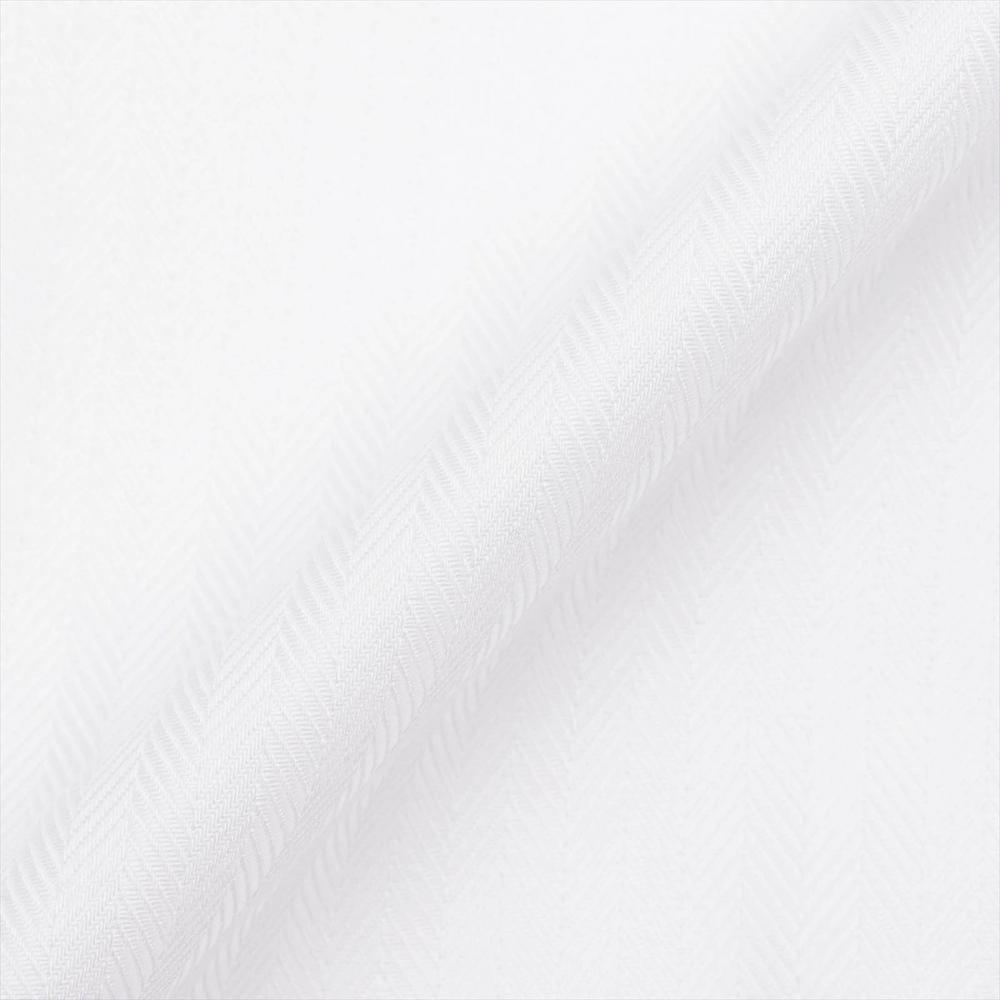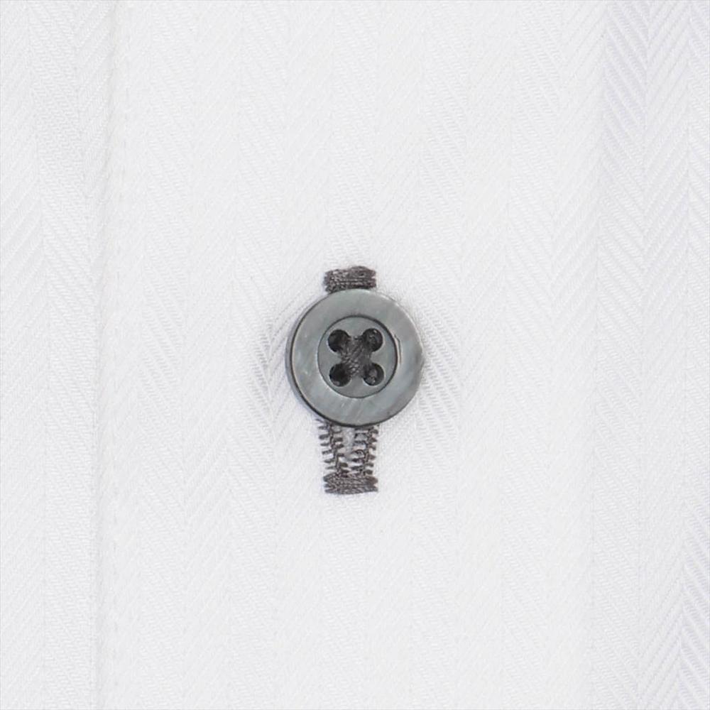 白ストライプ織柄生地に、台衿と カフス裏の別布使いや色ボタンを 取り入れてアクセントを添えた一枚は 個性ある衿元を演出してくれます。