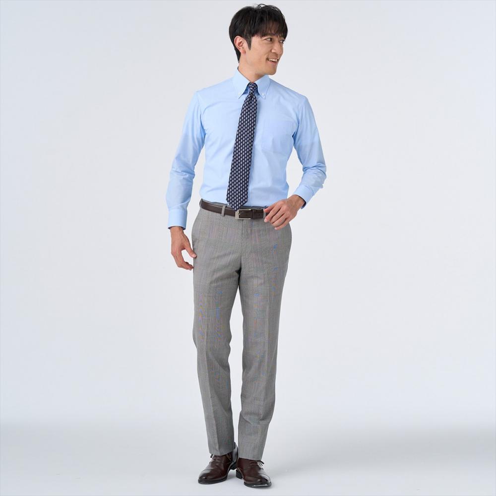 ベーシックなブルー無地調シャツは様々なシーンでも使い勝手抜群。