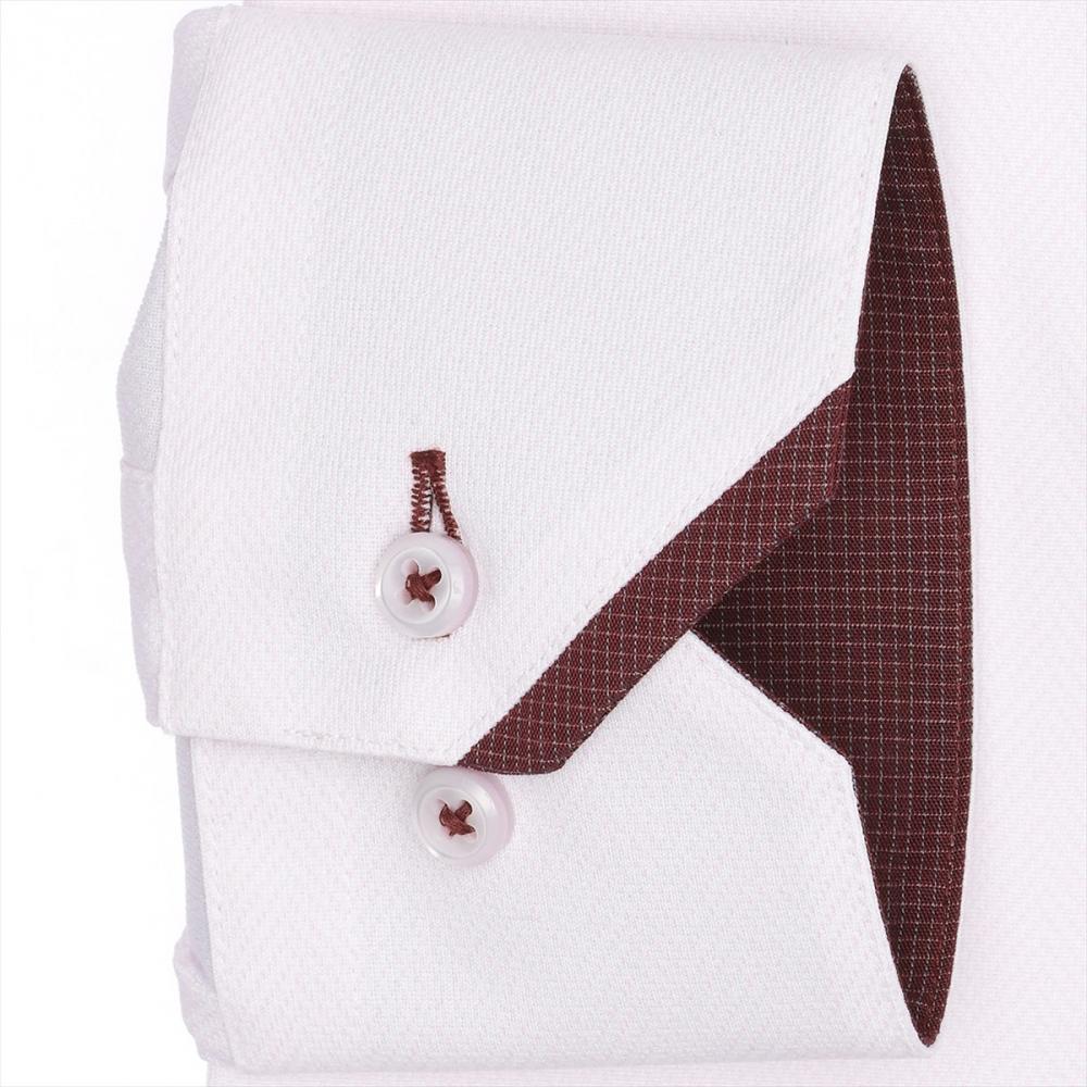 ピンクヘリンボーン織柄の生地に、 角切カフスに別布でマイター仕様にし、 アクセントを添えた一枚。