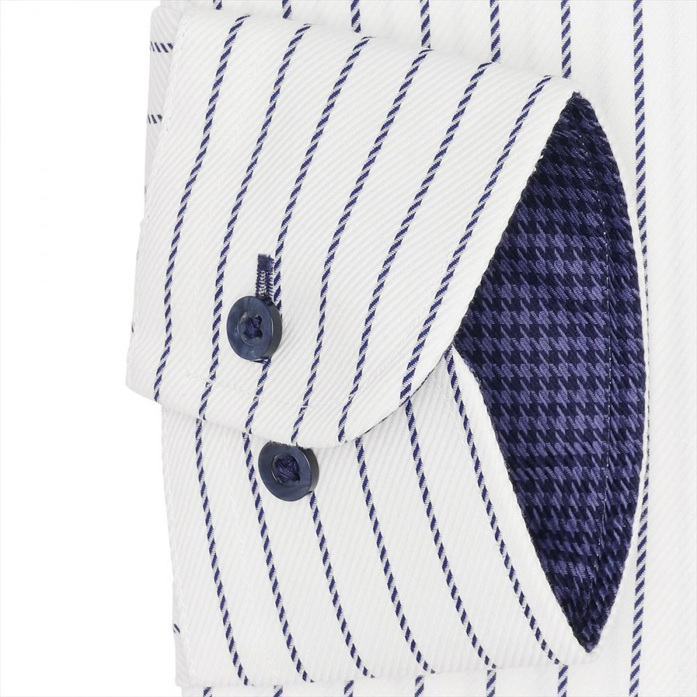 台衿とカフス裏の別布使いに色ボタンを 同系色に統一しながらも、アクセントを 添えた一枚は個性ある衿元を演出します。