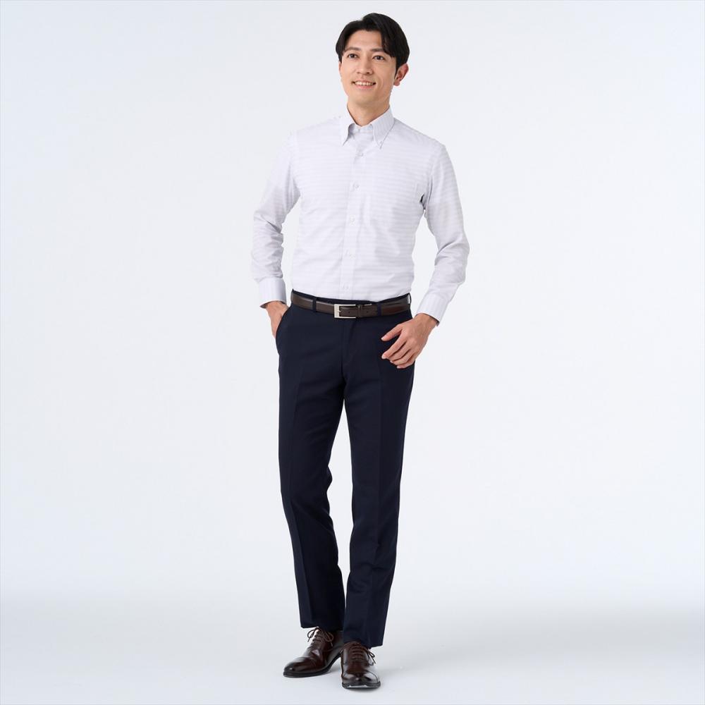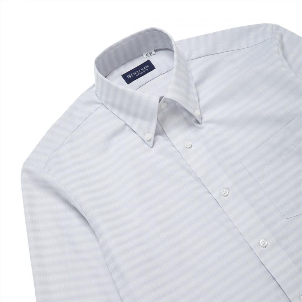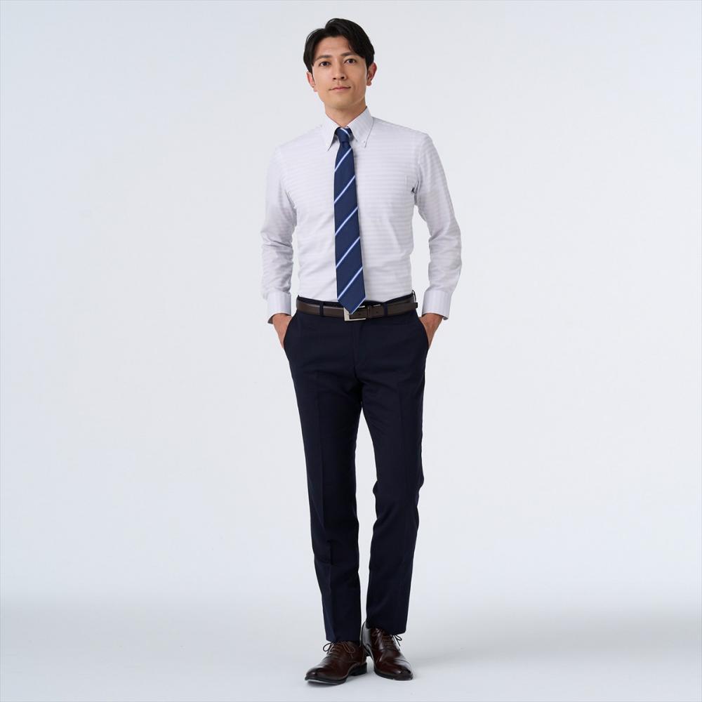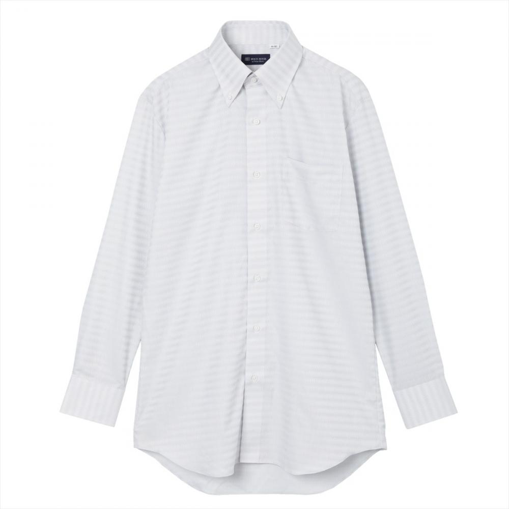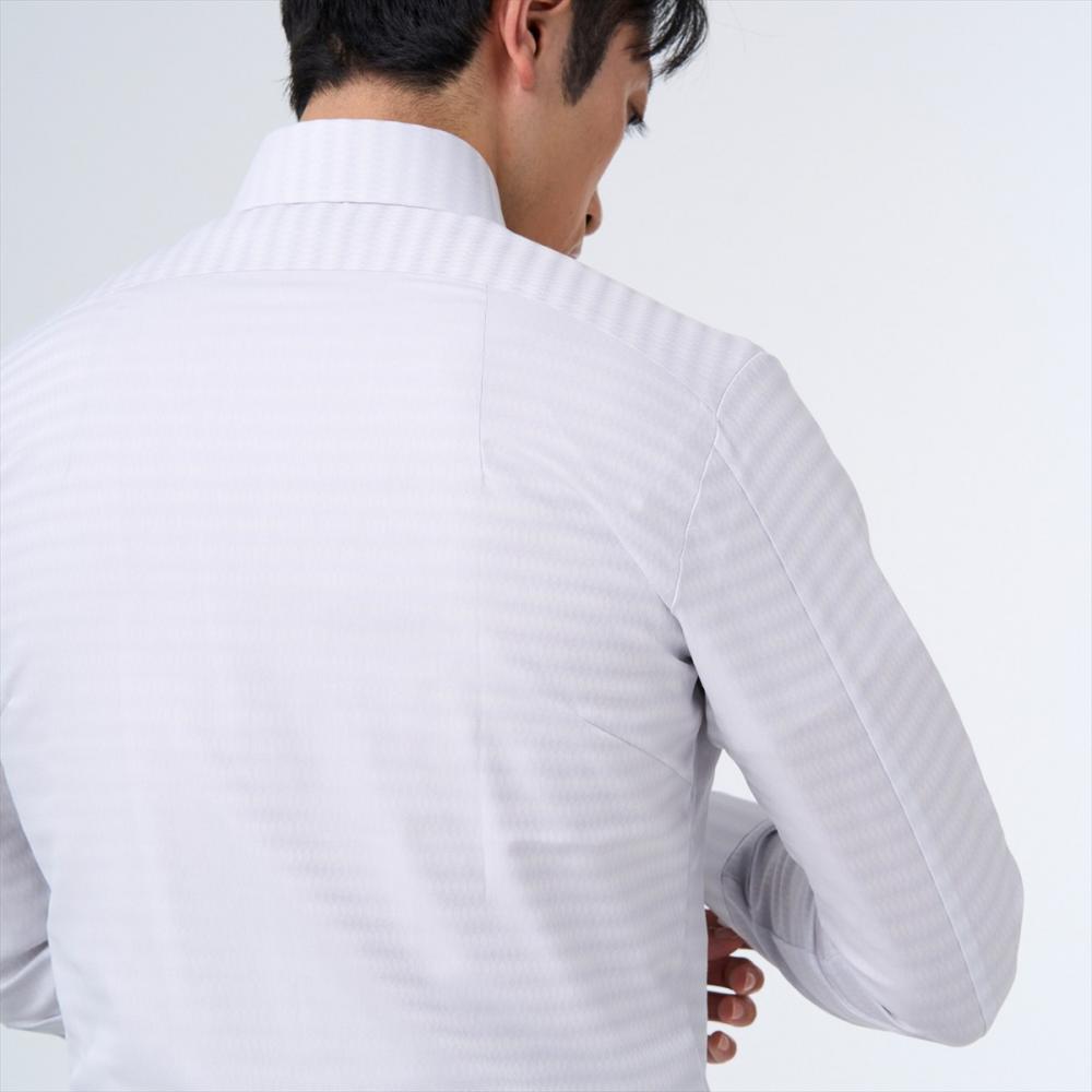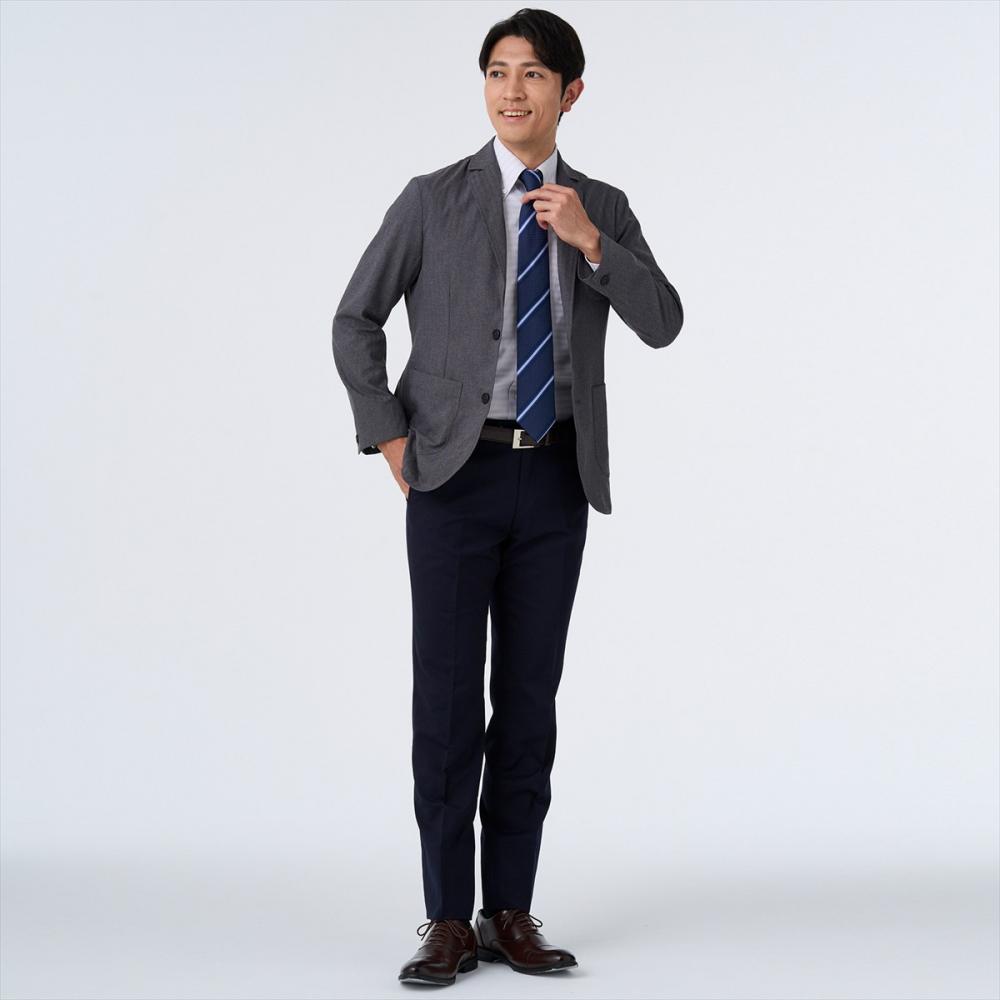 ビジカジスタイルでも使いやすいデザインのライトグレー織柄は、1枚で着てもスーツに合わせてもどちらもおすすめ。