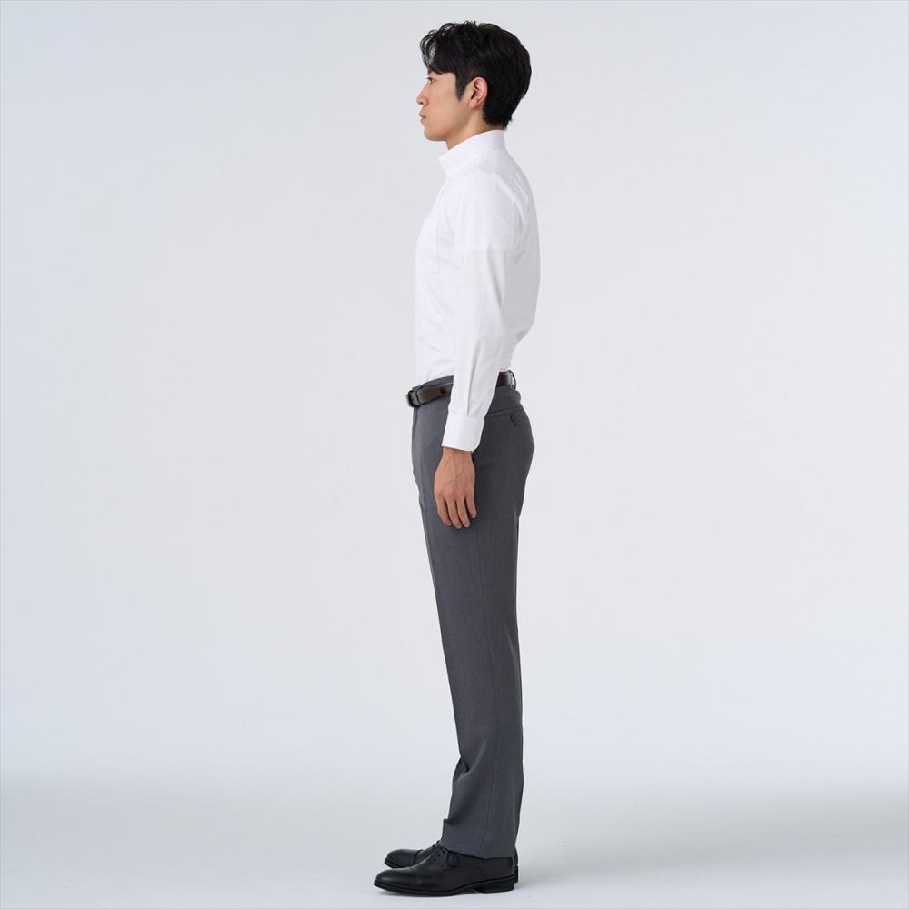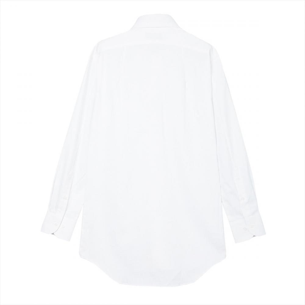 ノータイでの着用をイメージしたボタンダウンシャツなので、すっきりとしたラインを強調するために通常サイズと比べてすっきりとしたサイズ感に調整しました。