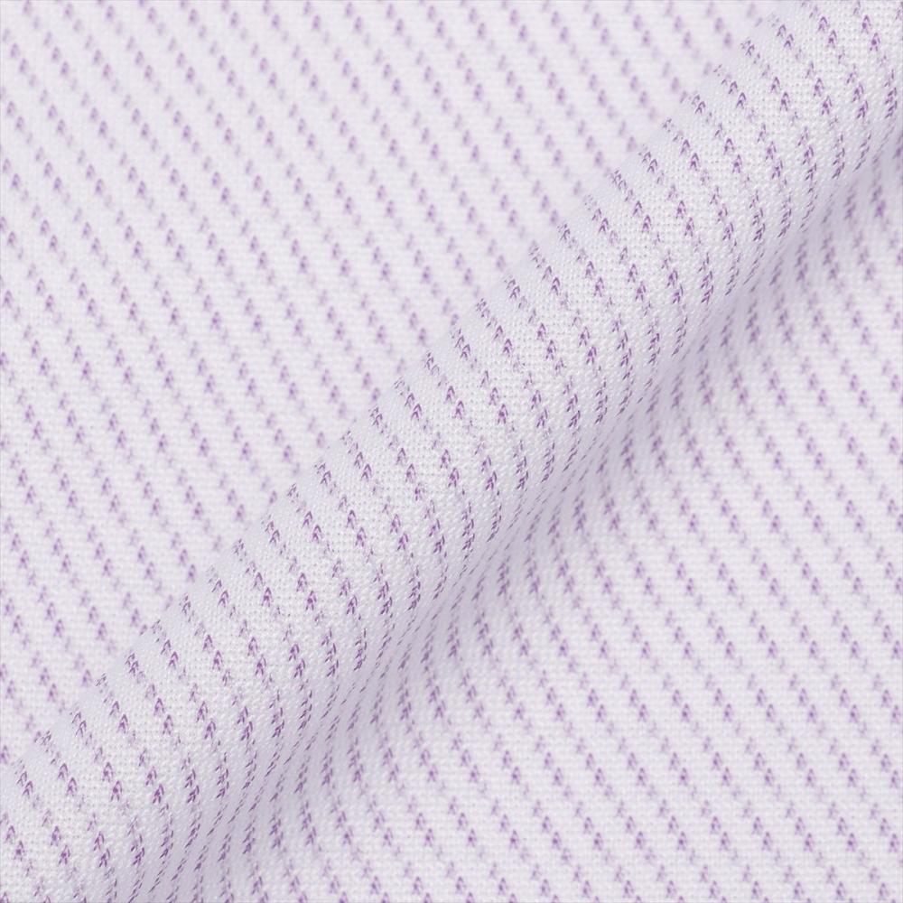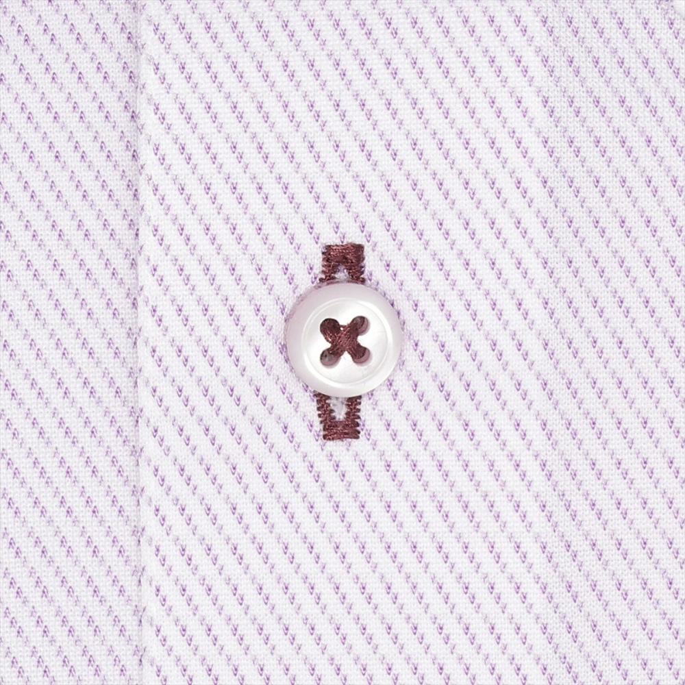 台衿とカフス裏の別布使いとボタン付け糸の パープルの色糸がアクセントを加えてくれ、 個性ある衿元を演出してくれます。