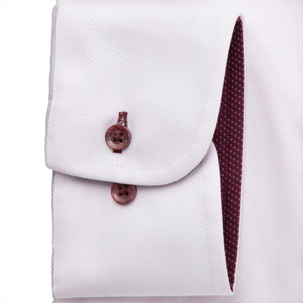 台衿とカフス裏の別布使いに色ボタンを 取り入れ、アクセントを添えた一枚は 個性ある衿元を演出してくれます。