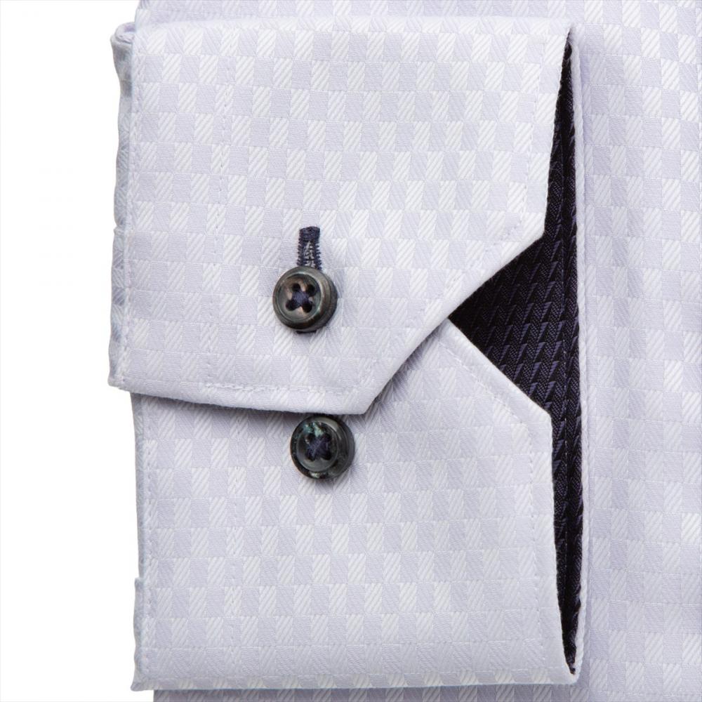 台衿とカフス裏の別布使いに色ボタンを 取り入れ、アクセントを添えた一枚は 個性ある衿元を演出してくれます。