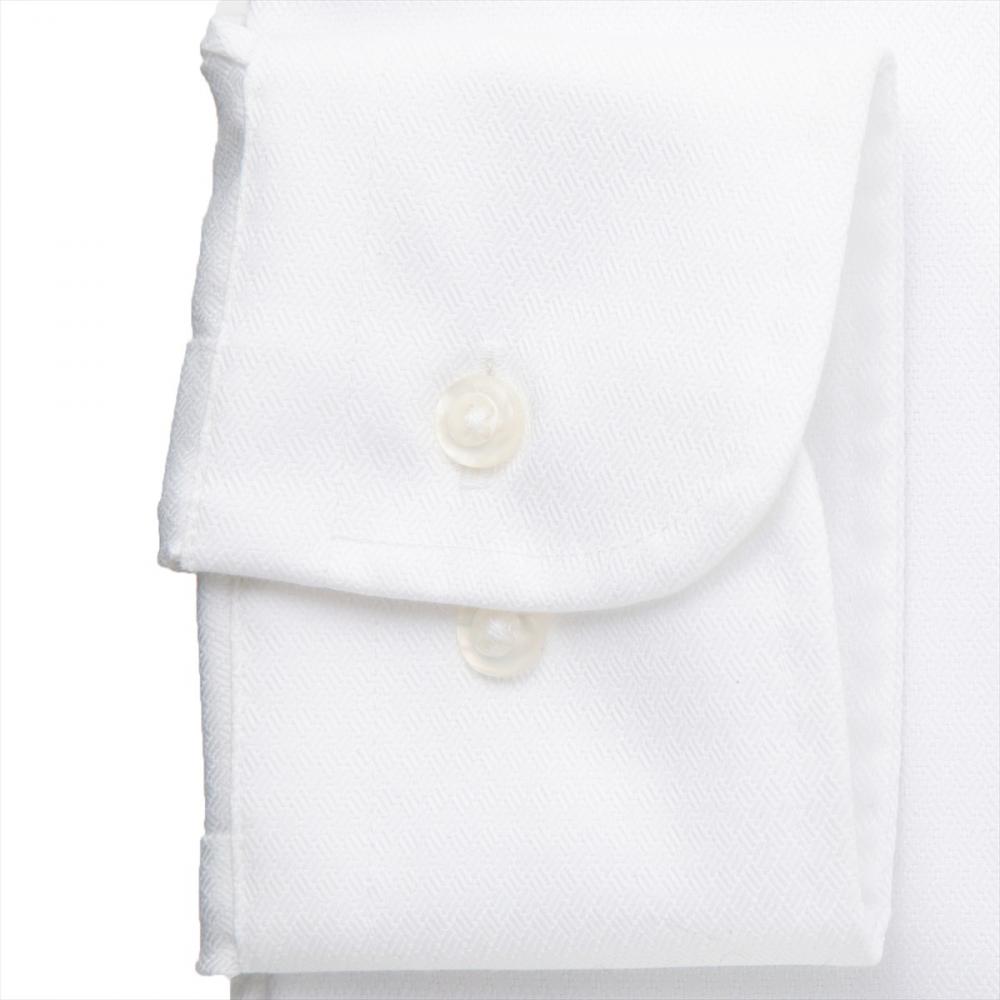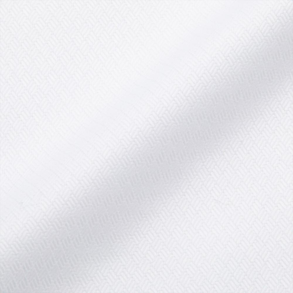 上品で洒落感漂う織柄の白シャツは なじみやすくビジネスシーンで活躍 してくれ、ネクタイとの相性も◎です。