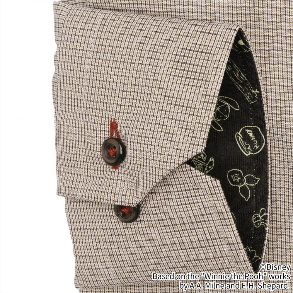 100エーカーの森に住む「くまのプーさん」 デザイン別生地を台衿内側・カフス裏側に 配置したシャツ。