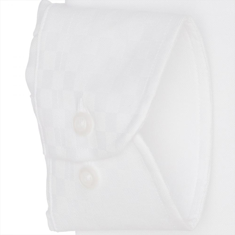 上品で洒落感漂う織柄の白シャツは なじみやすくビジネスシーンで活躍 してくれ、ネクタイとの相性も◎です。