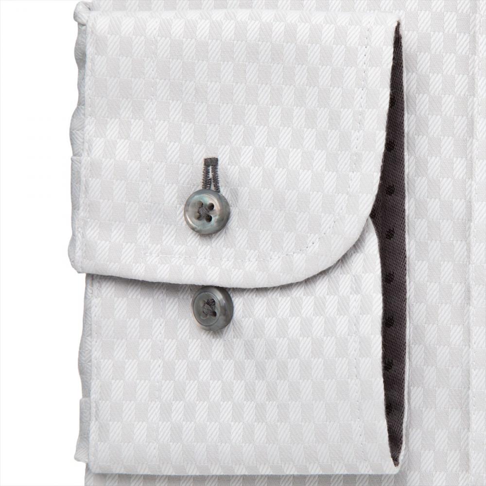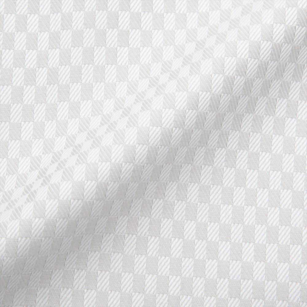 グレー市松格子織柄の身生地に 台衿とカフス裏の別布使いに色ボタンを 取り入れ、アクセントを添えた一枚は 個性ある衿元を演出してくれます。