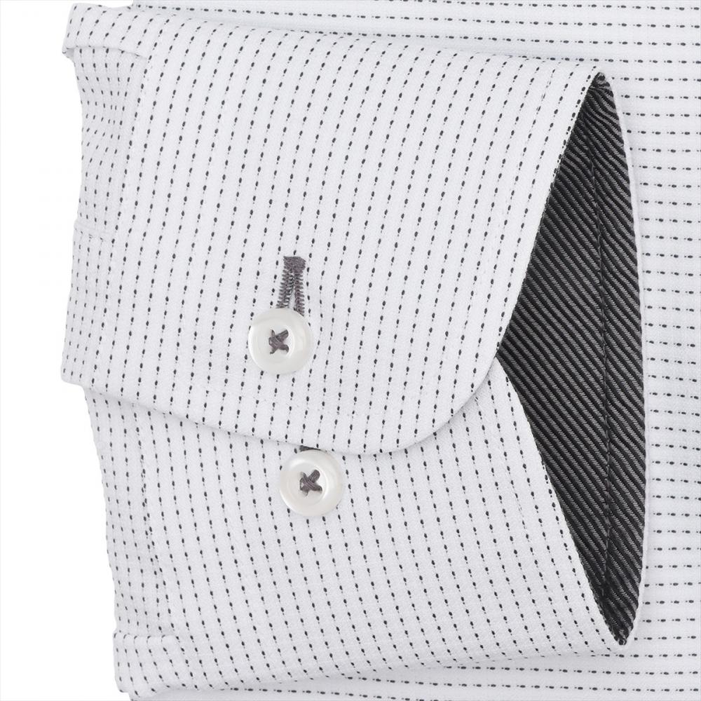 台衿とカフス裏の別布使いにボタン付糸を 同系色に統一しながらも、アクセントを 添えた一枚は個性ある衿元を演出します。
