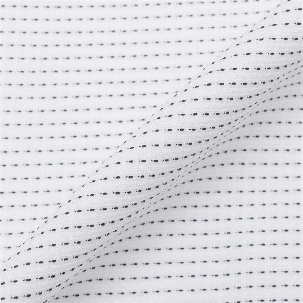シワになりにくく、扱いやすい ポリエステル100%素材で吸汗速乾性にも 優れており、ビジネスシーンでも ストレスなくご着用いただけます。
