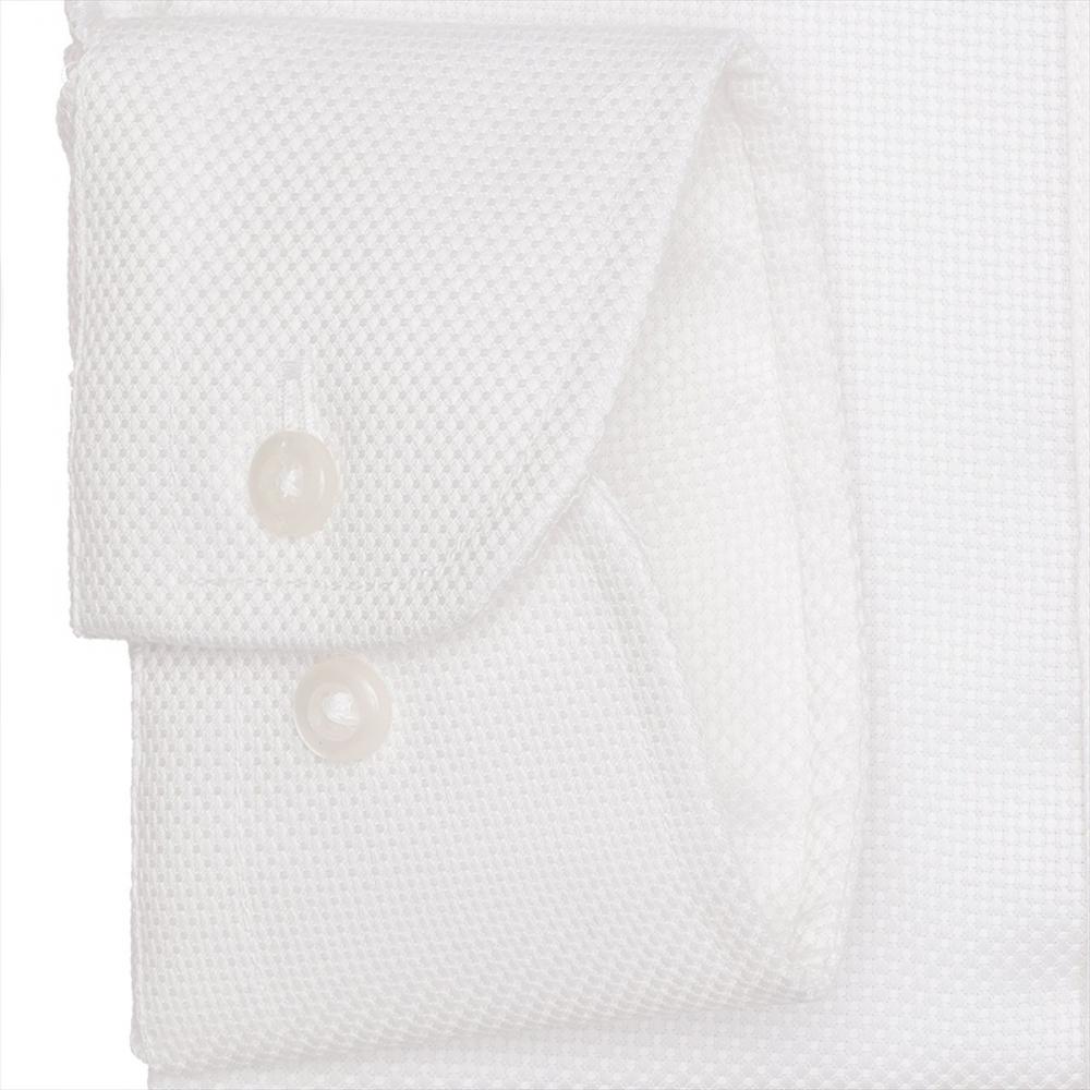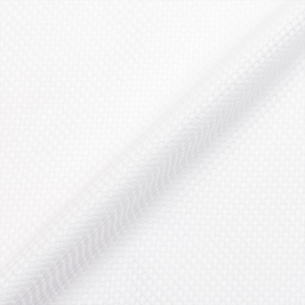 上品で洒落感漂う織柄の白シャツは なじみやすくビジネスシーンで活躍 してくれ、ネクタイとの相性も◎です。