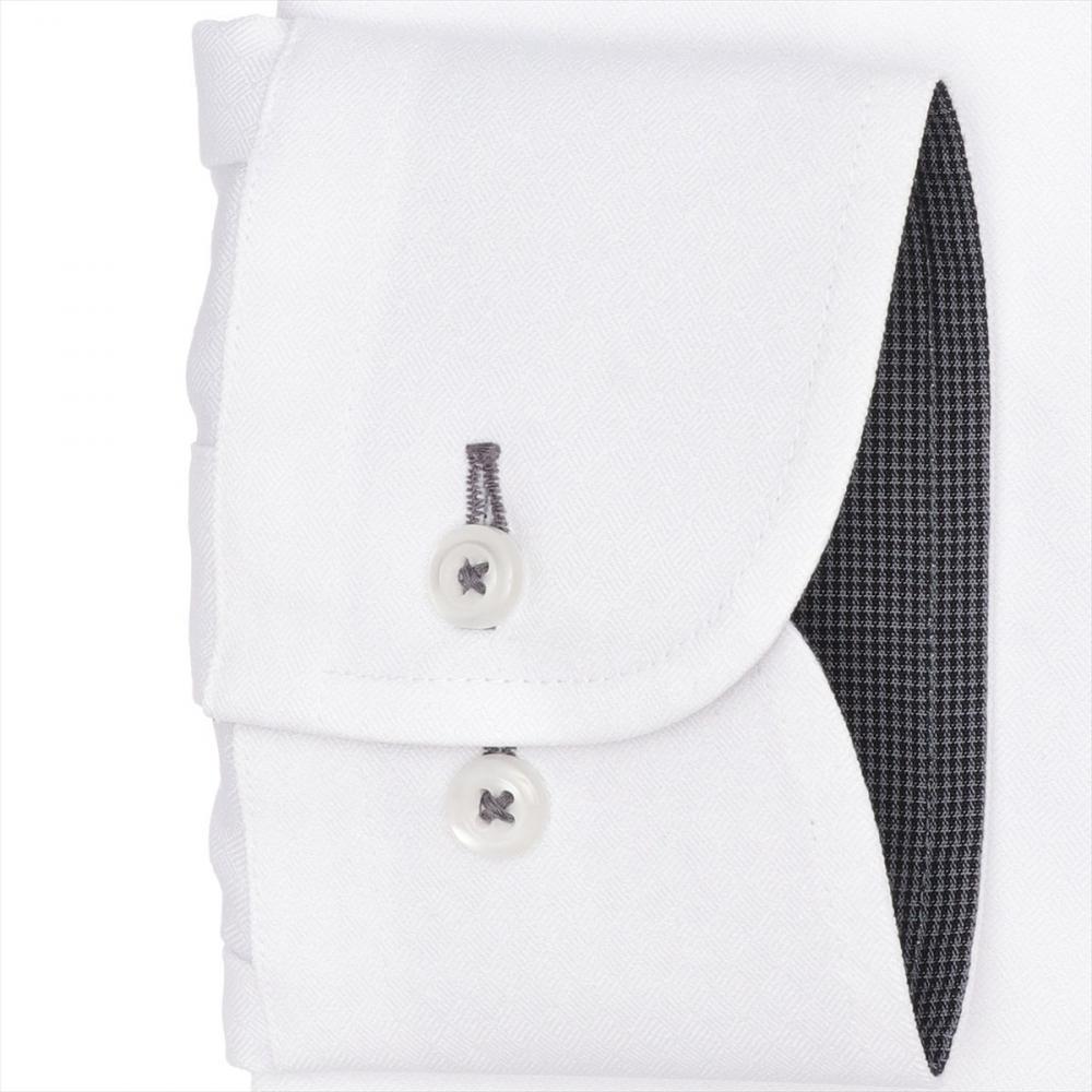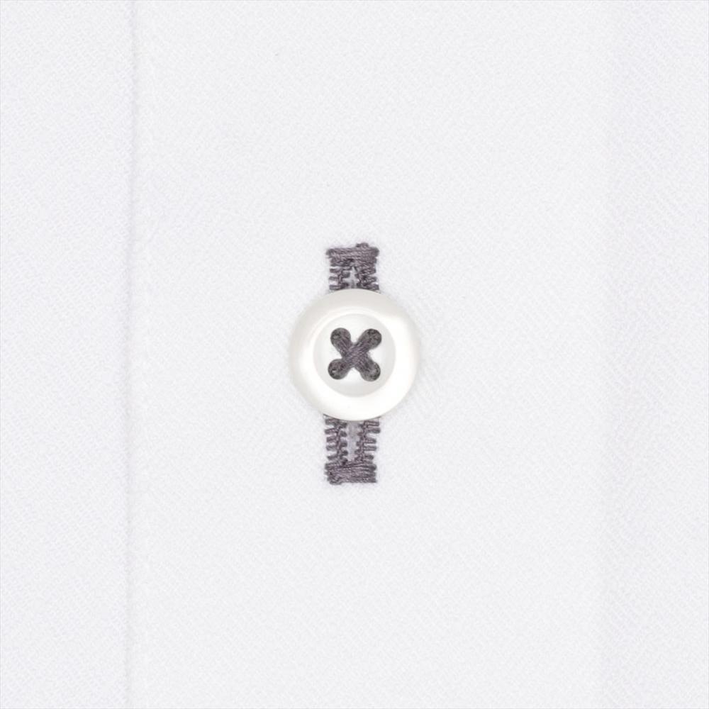 白ダイヤ織柄に台衿とカフス裏の 別布使いとボタン付け糸のグレー色糸が アクセントを加え個性ある衿元を演出。