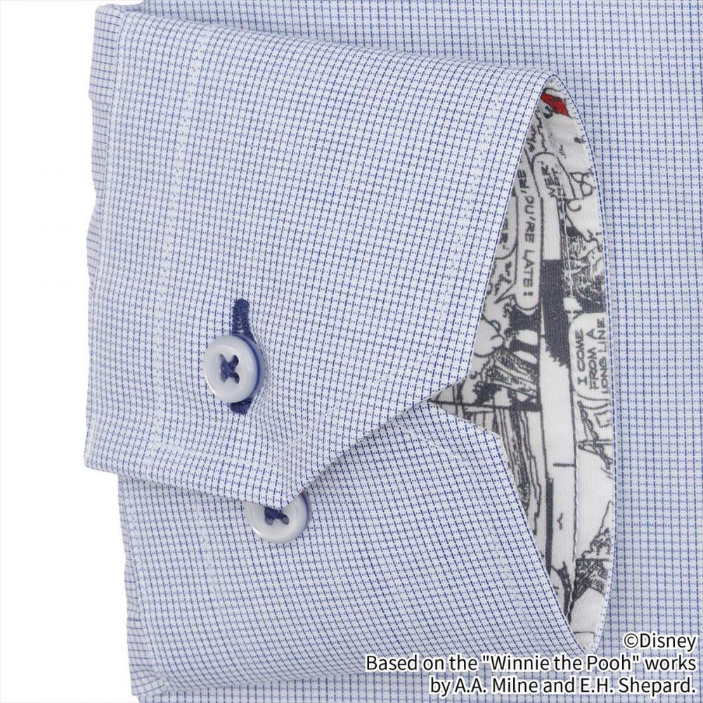 100エーカーの森に住む「くまのプーさん」 デザイン別生地を台衿内側・カフス裏側に 配置したシャツ。