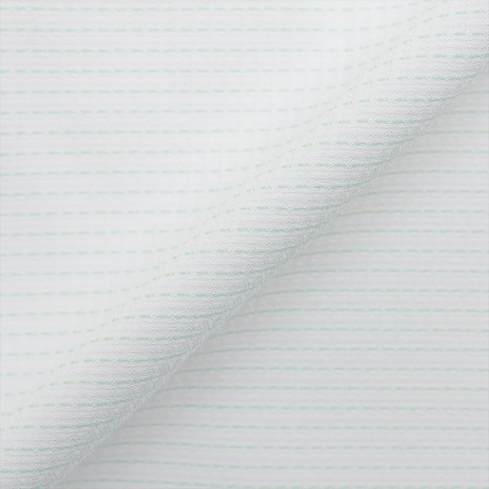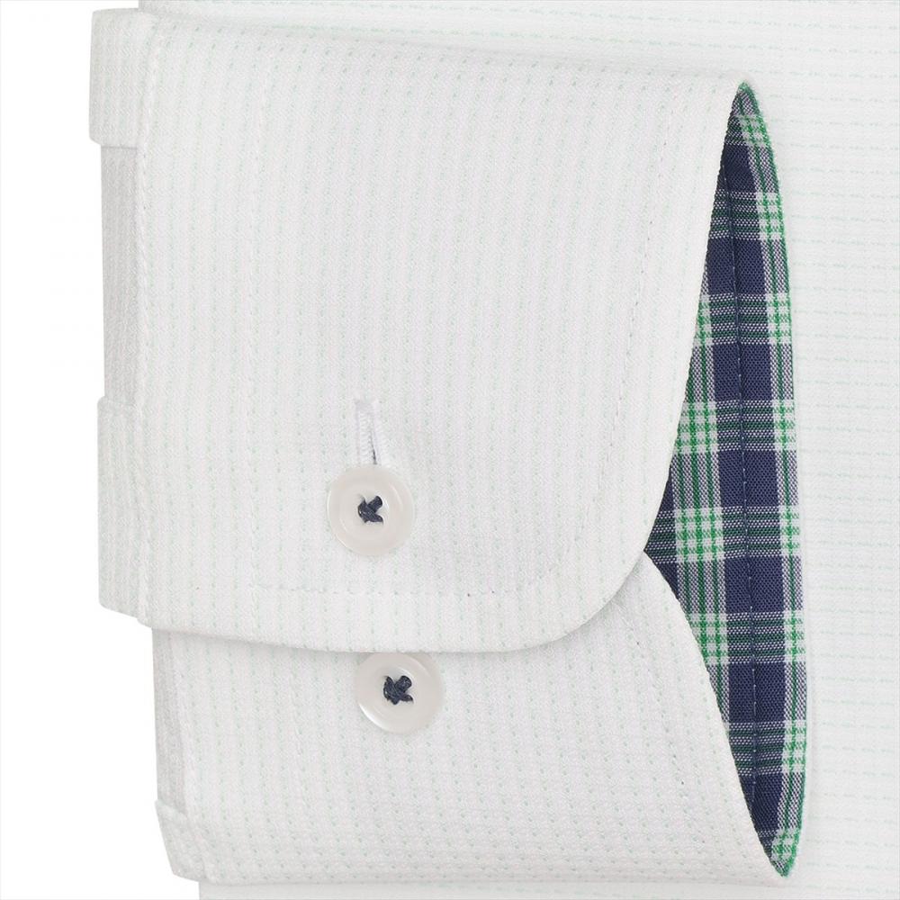 台衿とカフス裏の別布使いとボタン付け糸の グリーン色糸がアクセントを加えてくれ、 個性ある衿元を演出してくれます。