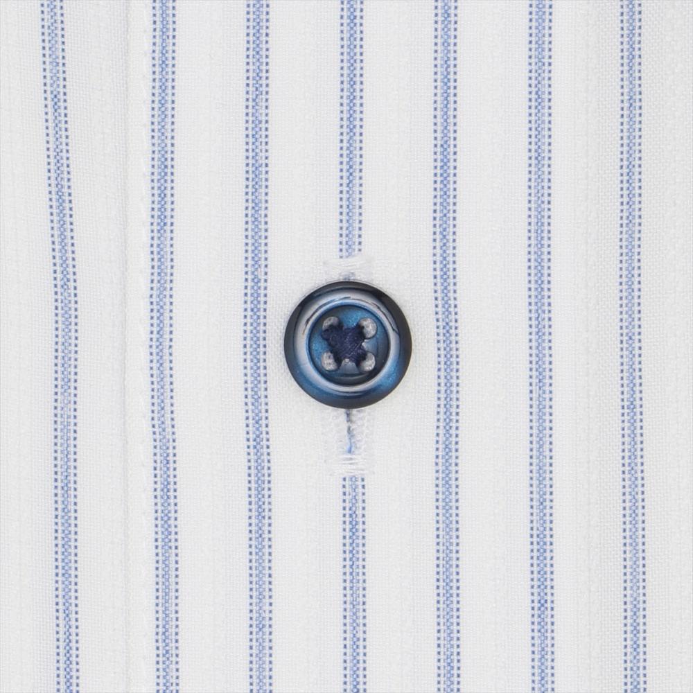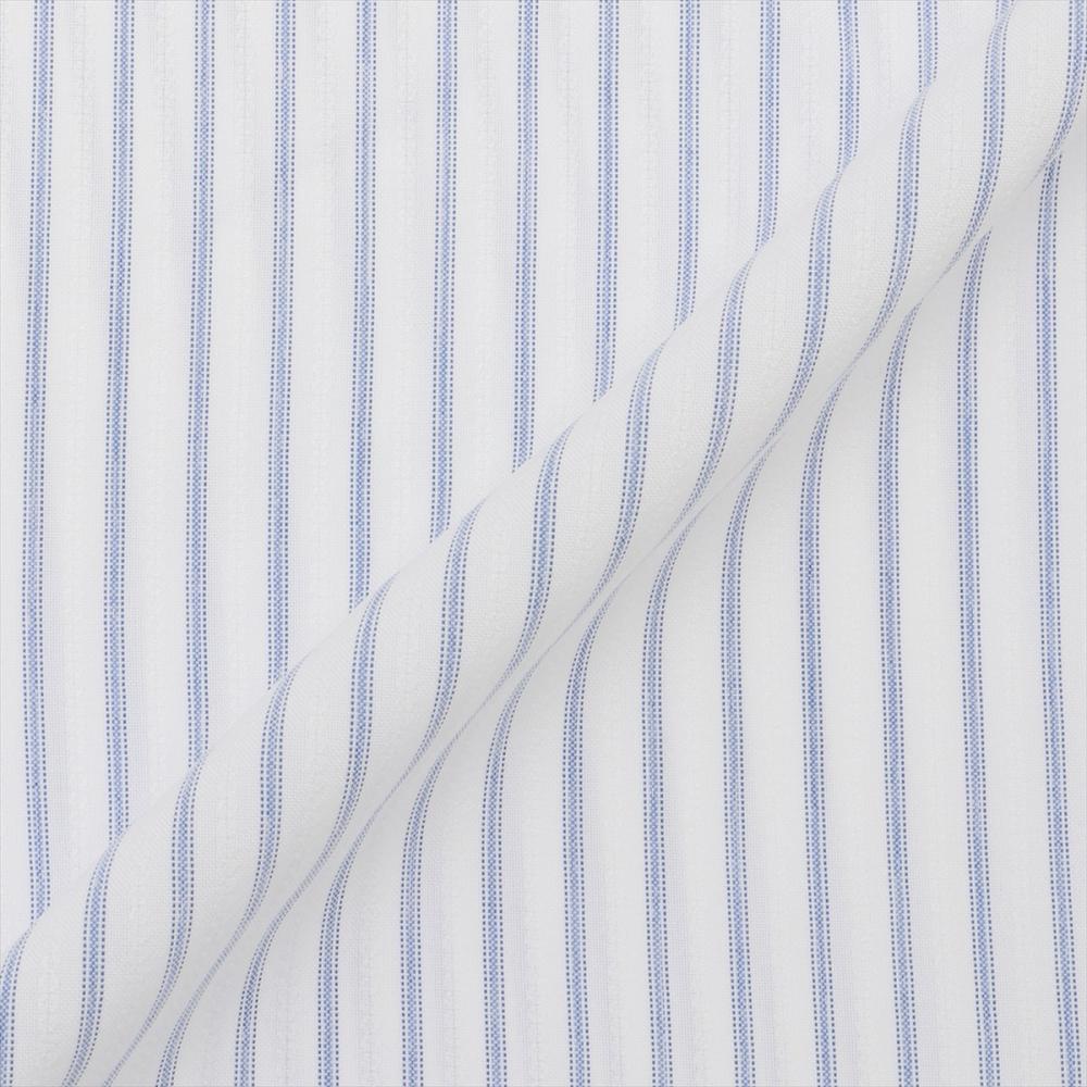 清潔感のあるブルーストライプの柄は スラックスやチノパン等、ボトムスを 変えることでコーデの幅を広げてくれます。