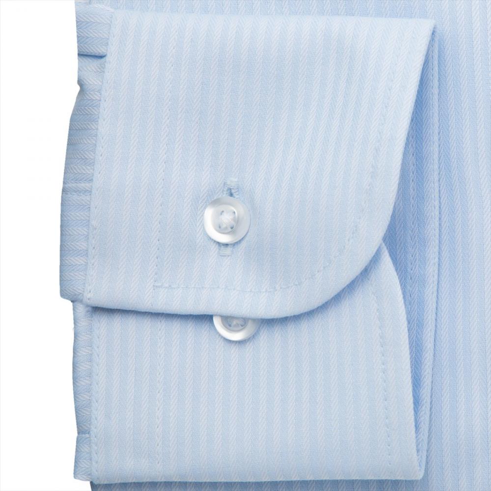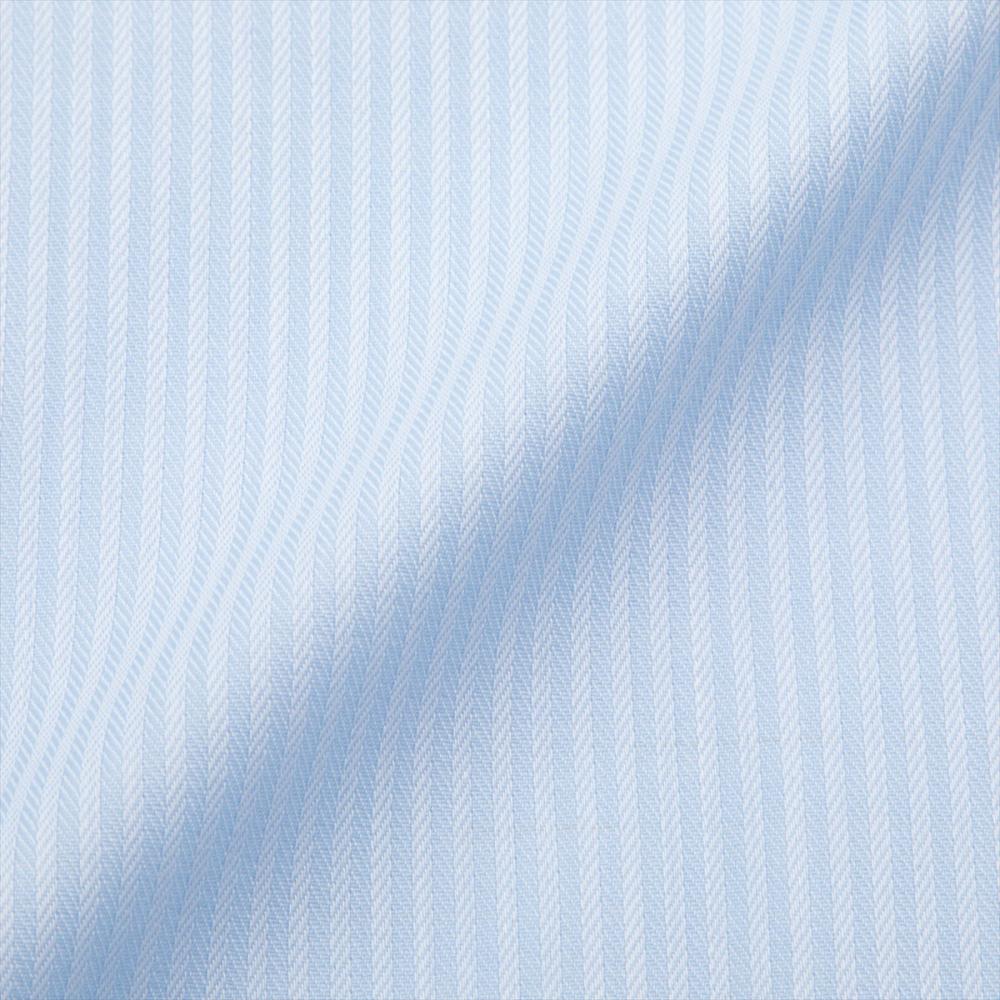 爽やかで清潔感漂うサックス織シャツは なじみやすくビジネスシーンで活躍 してくれ、ネクタイとの相性も◎です。