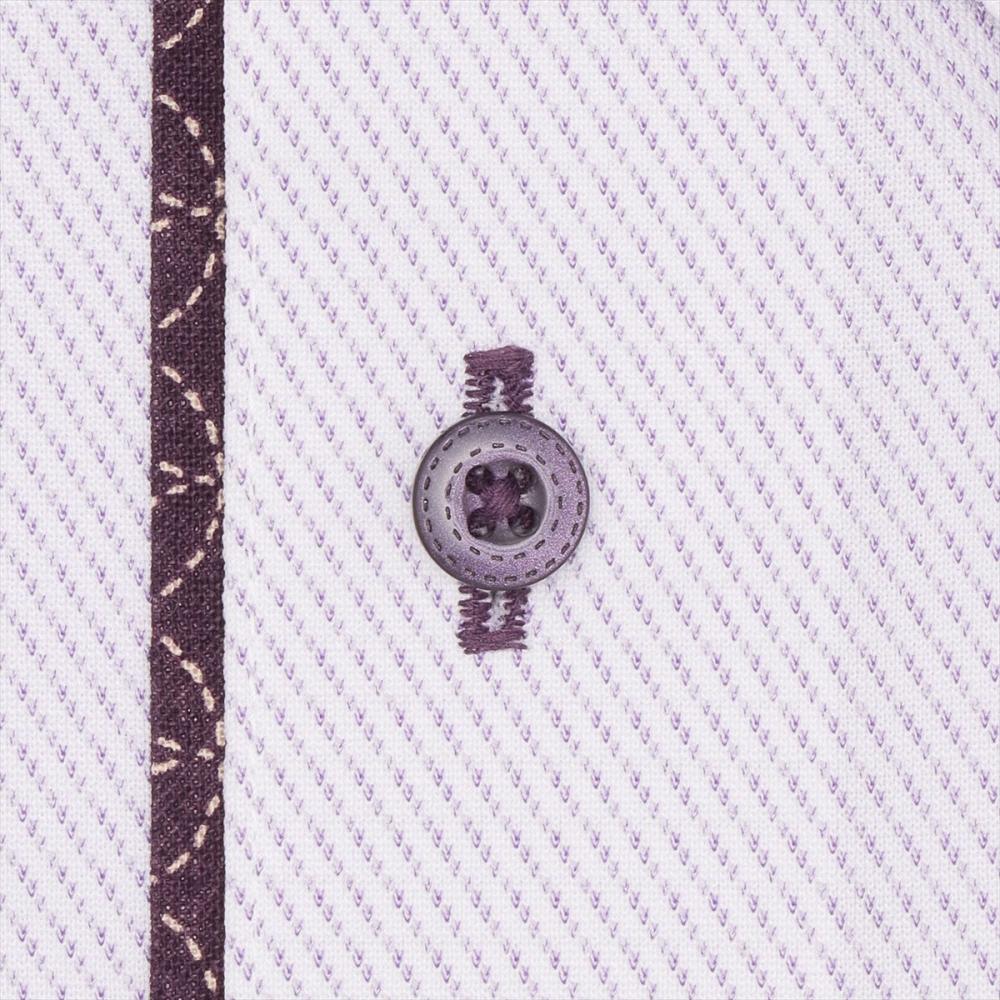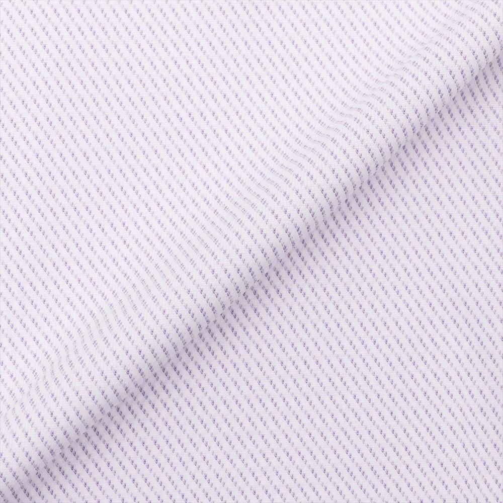 斜めに走るパープルストライプ生地に 少し見える下前立の別布使いが個性的 で洒落感を演出するデザインはシャツ を主役に1枚で着るのもオススメ◎。