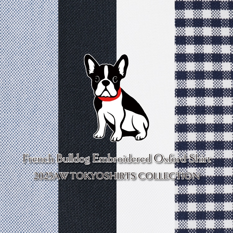 左胸にフレンチブルドッグ刺繍を入れて さり気なく目をひくデザイン。
