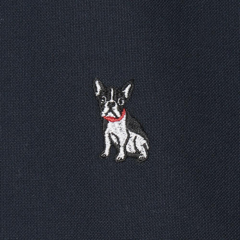 左胸にフレンチブルドッグ刺繍を入れて さり気なく目をひくデザイン。