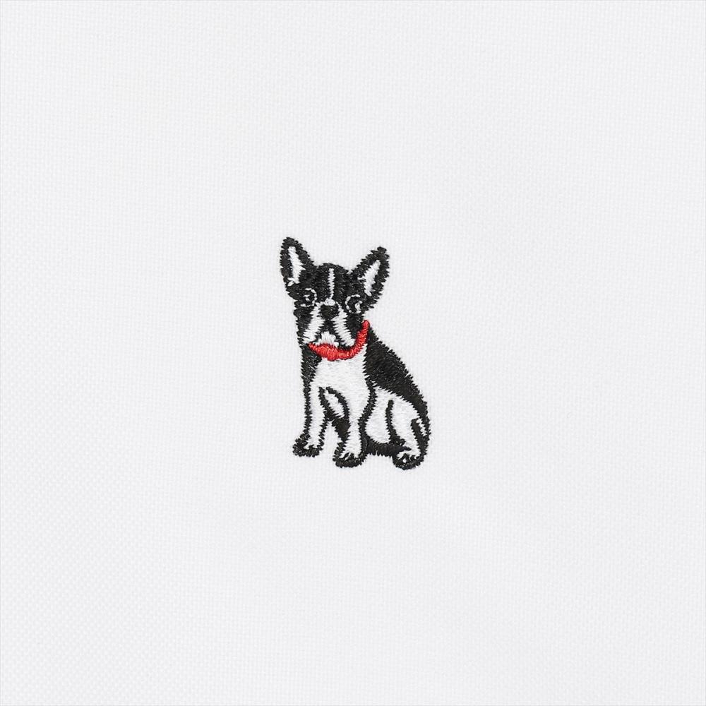 左胸にフレンチブルドッグ刺繍を入れて さり気なく目をひくデザイン。