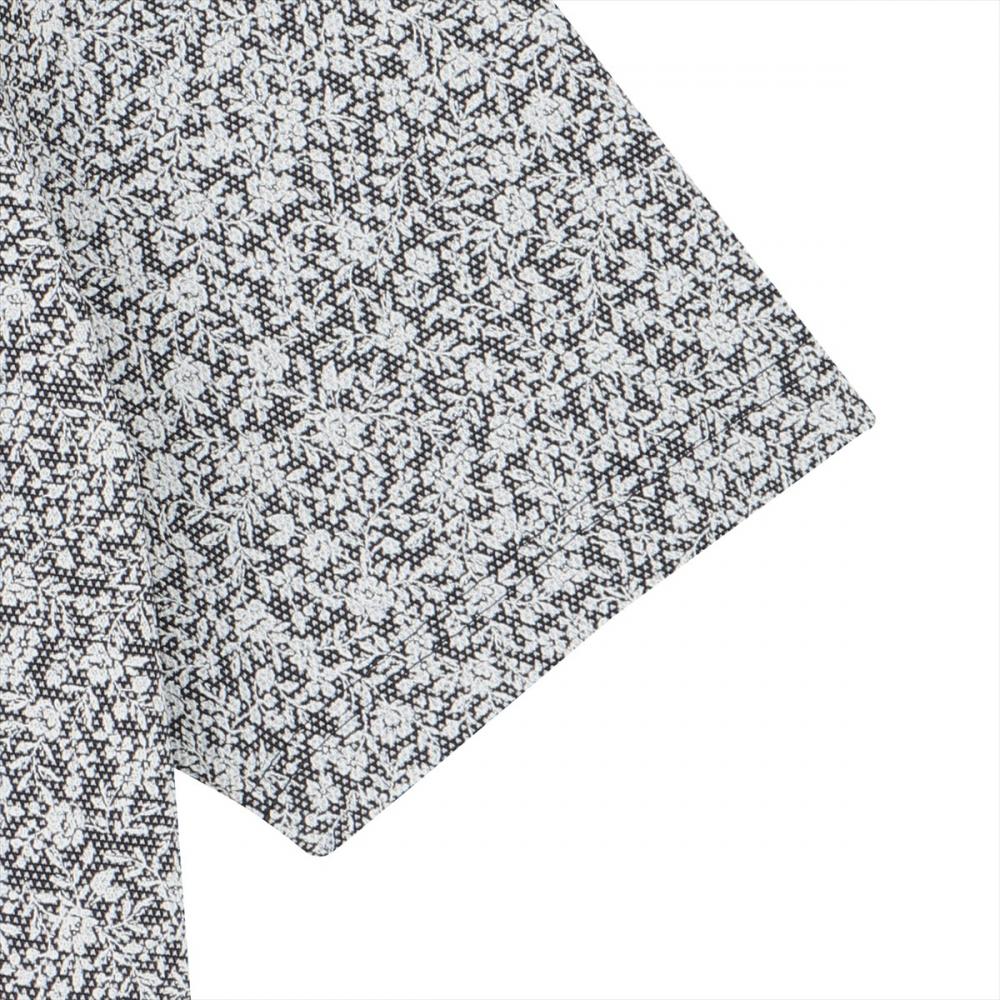 優し気な印象の小花柄プリントの ポロシャツは合わせやすい色味で 派手になりすぎず、一味違う 着こなしが楽しめる夏場に◎な一枚。