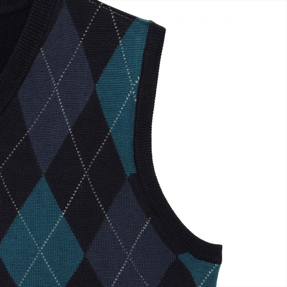 ビジネススタイルにも馴染みの良い アーガイル柄のVネックベスト。