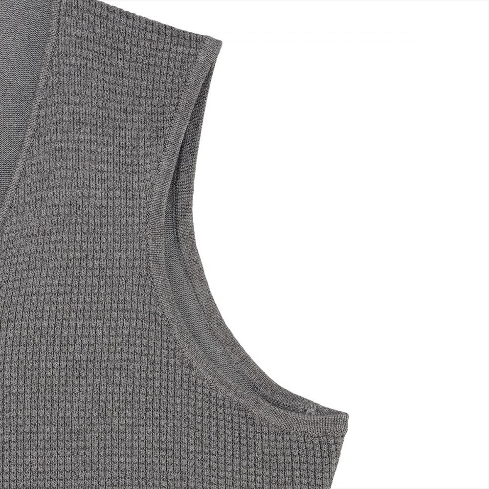 メランジ調の糸を採用し、表情のある 雰囲気に仕上げたメッシュジレ。