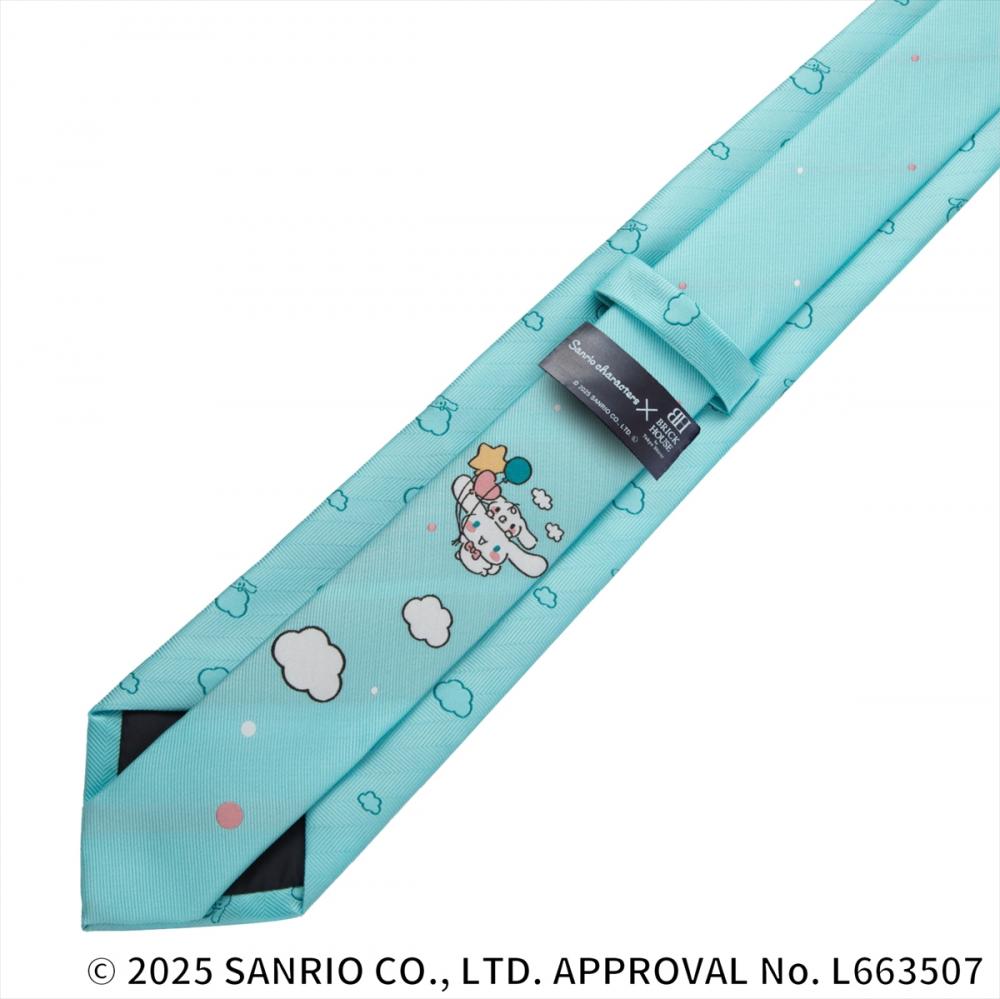 大剣裏側のループ下部に【Sanrio characters×BRICK HOUSE】のロゴをあしらいました。 また、ネクタイデザインのキャラクター【シナモン】の下げ札を付けてお届けします。 特別感溢れるお洒落な仕様が散りばめられたネクタイです。