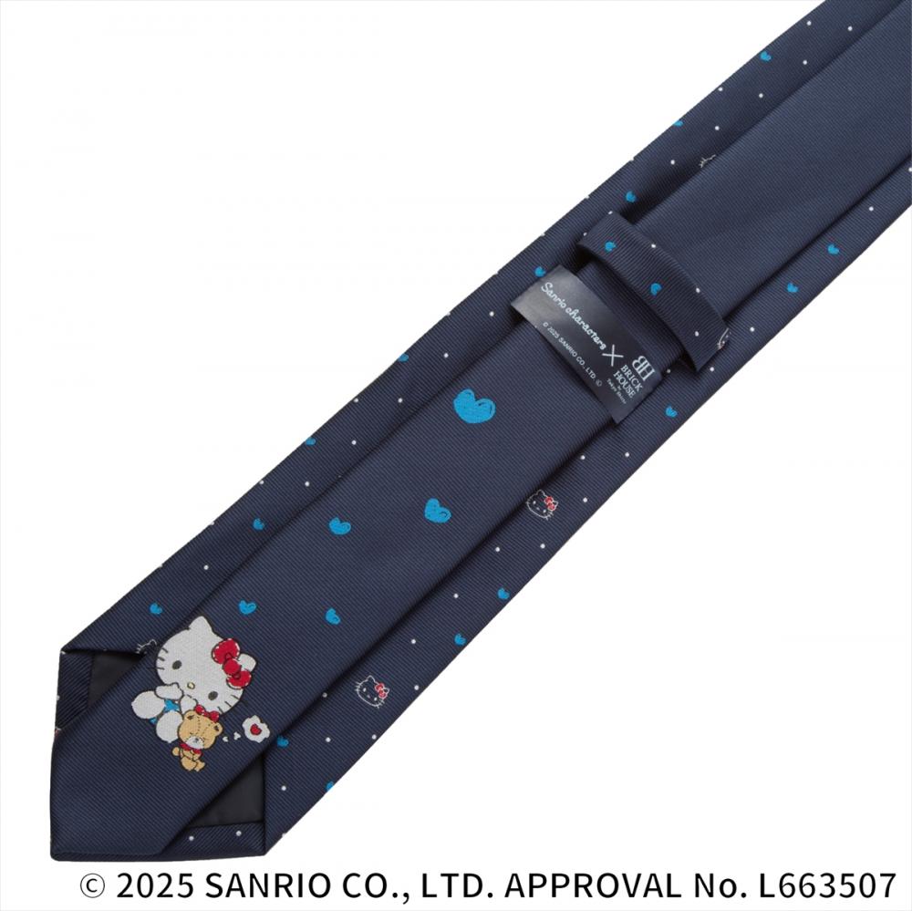 大剣裏側のループ下部に【Sanrio characters×BRICK HOUSE】のロゴをあしらいました。 また、ネクタイデザインのキャラクター【キティ】の下げ札を付けてお届けします。 特別感溢れるお洒落な仕様が散りばめられたネクタイです。
