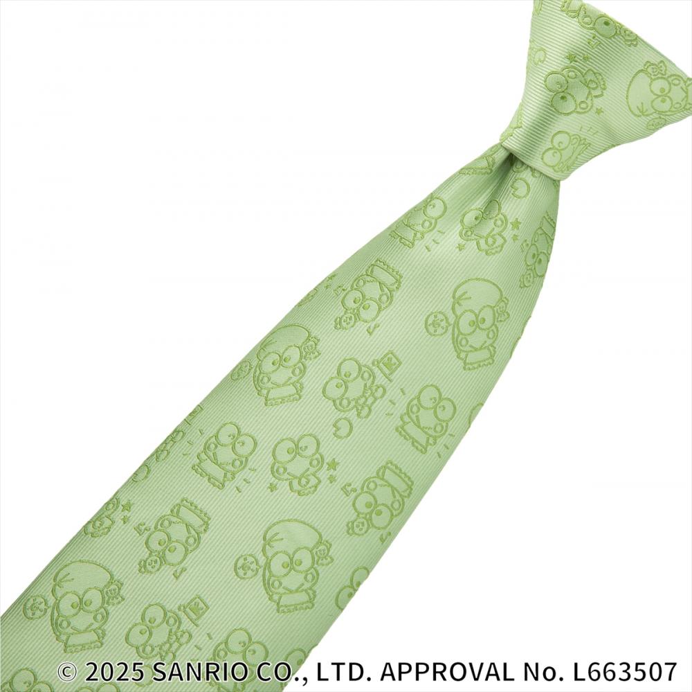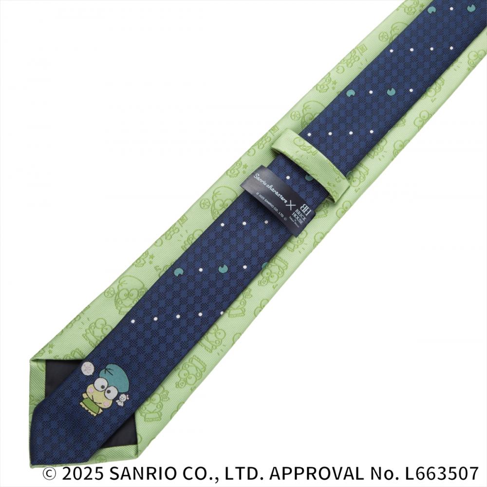 大剣裏側のループ下部に【Sanrio characters×BRICK HOUSE】のロゴをあしらいました。 また、ネクタイデザインのキャラクター【けろっぴ】の下げ札を付けてお届けします。 特別感溢れるお洒落な仕様が散りばめられたネクタイです。