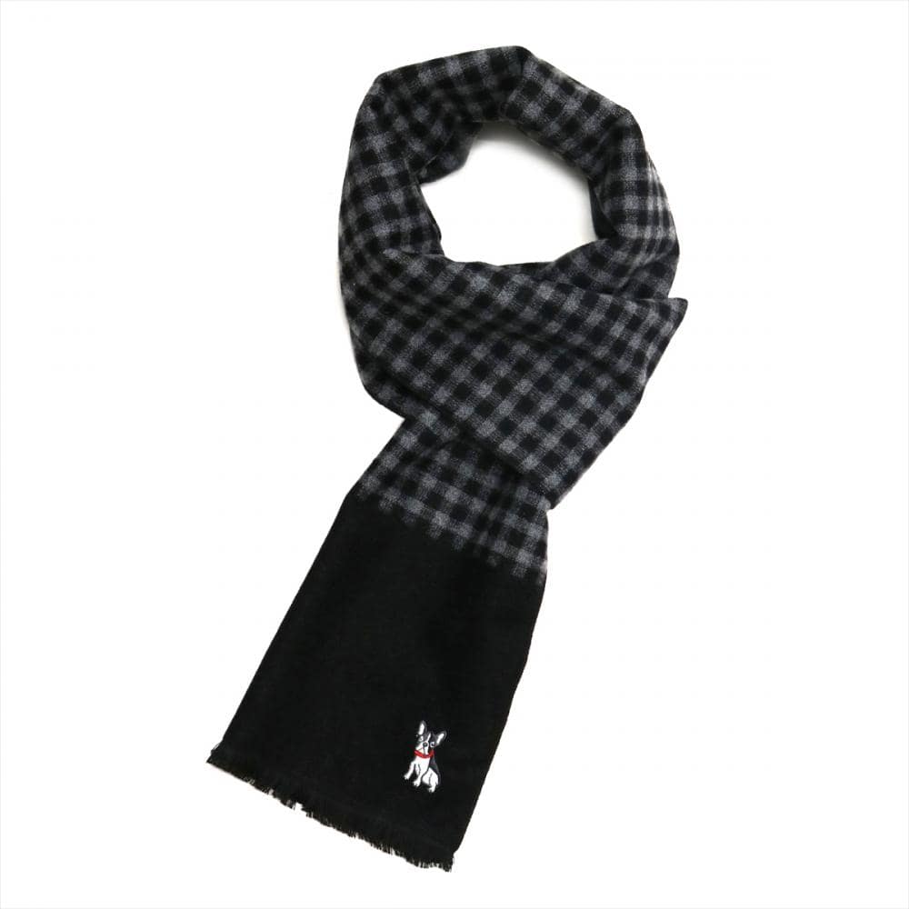 愛らしい犬の刺繍がワンポイントに人目を惹き付けるデザインです。 チェック柄の可愛い柄と相まって、親しみやすい優しい印象を与えます。 寒さ対策とコーデの華やかさを兼ね備えた冬の装いに加えたい一本。