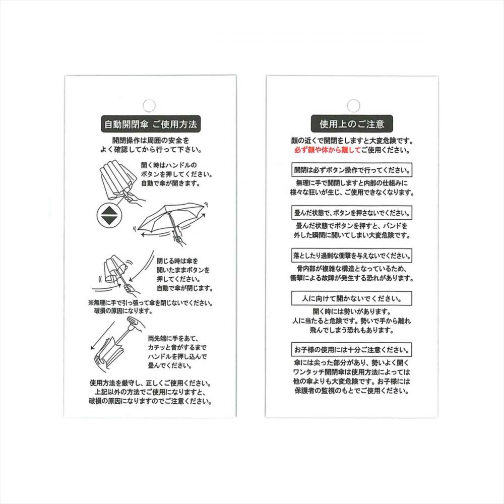 ワンタッチで自動開閉傘する 簡単・楽ちんの使いやすさ。 カラナビ付のロゴ入り収納袋で 機能面だけでなくデザインも お洒落な折りたたみ傘です。