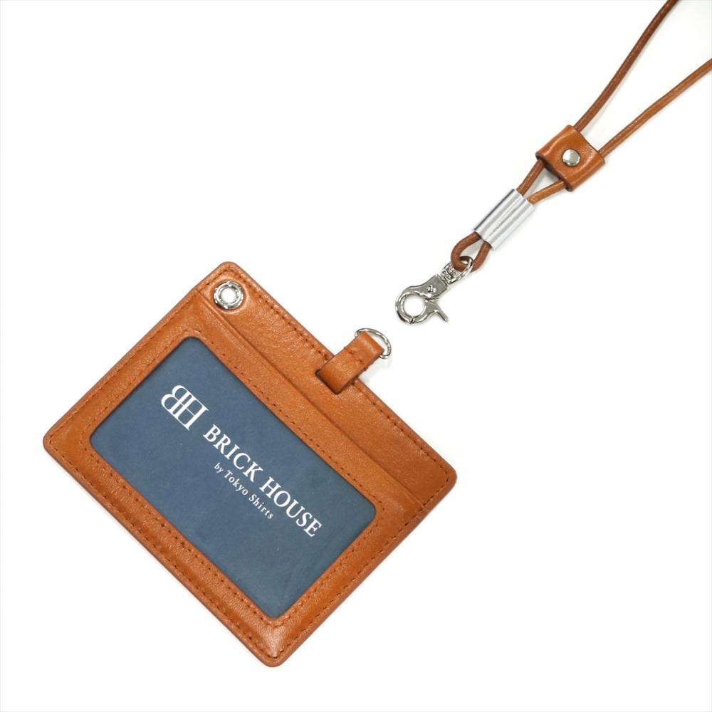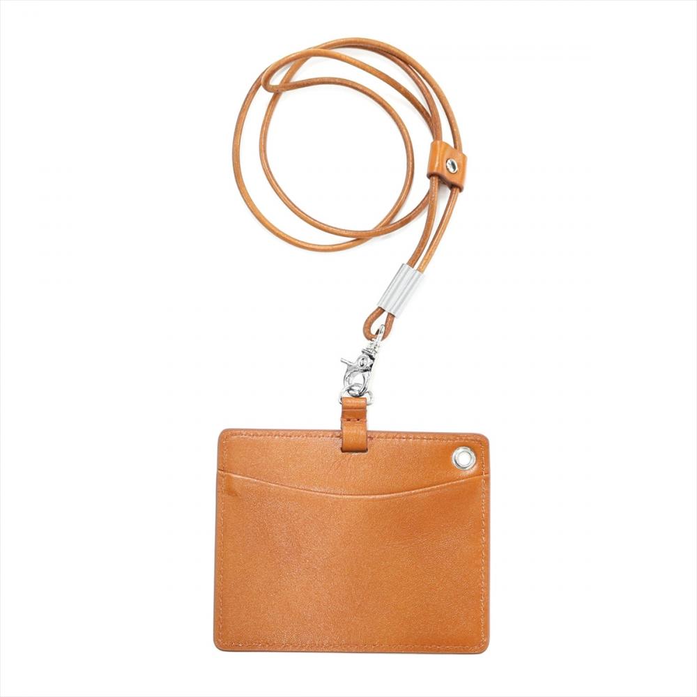 IDカードホルダー ネックストラップ付き 横型 本革 牛革