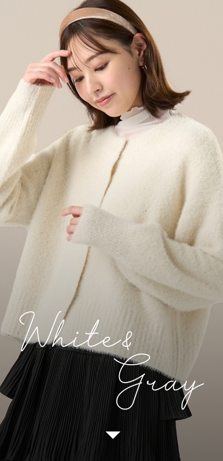 白やグレーのニットは、あなたの魅力をそっと引き立てる名脇役。