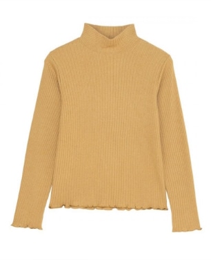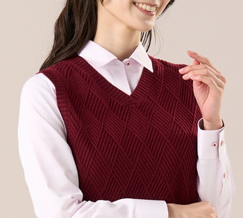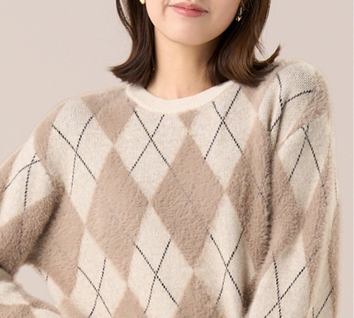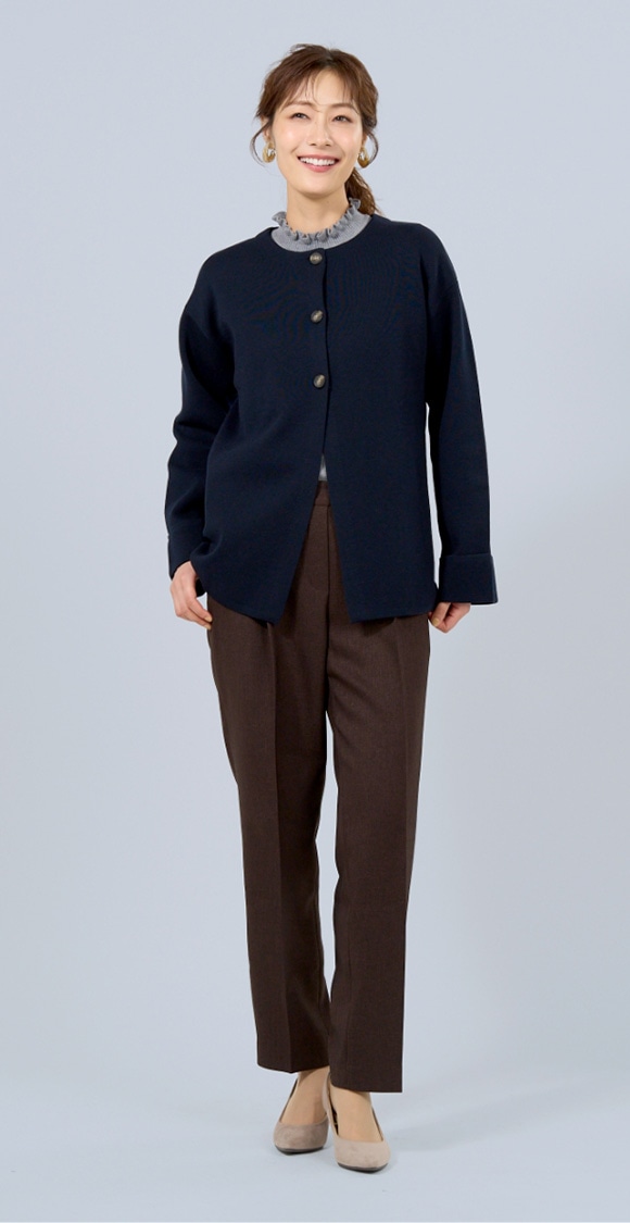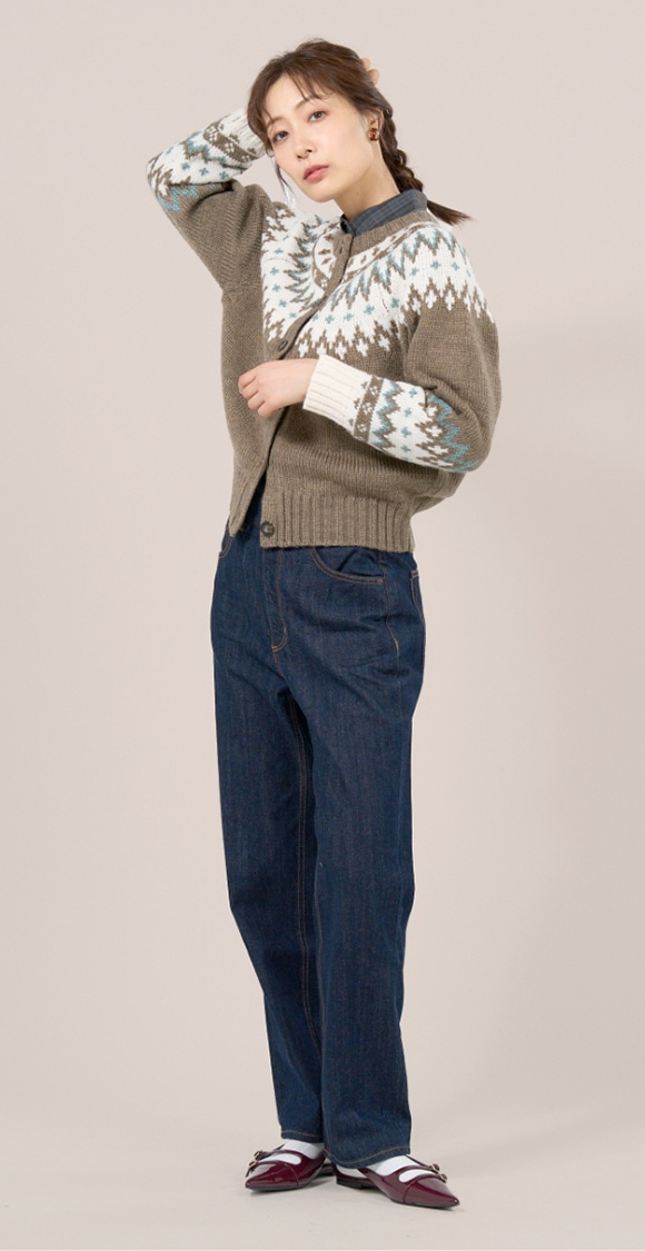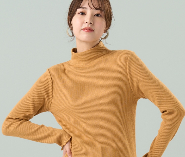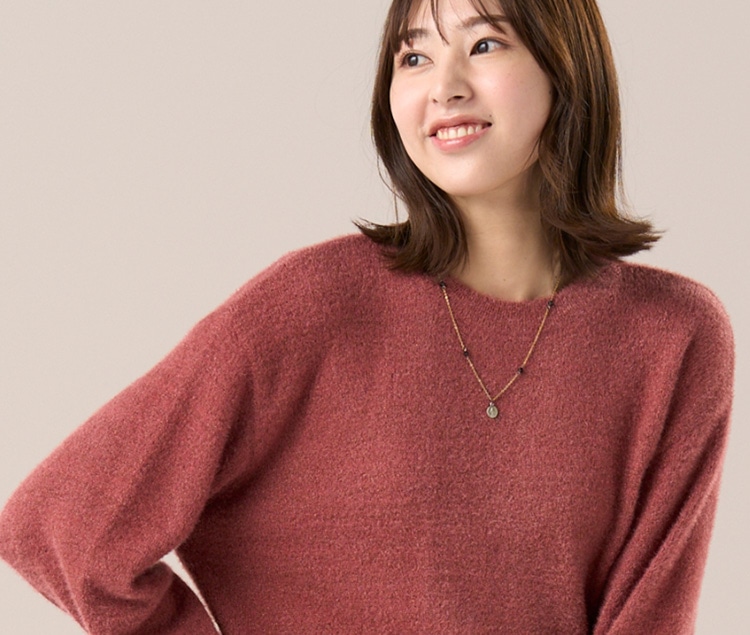 暖色カラーのニットでいつもの着こなしをワンランクアップさせましょう。