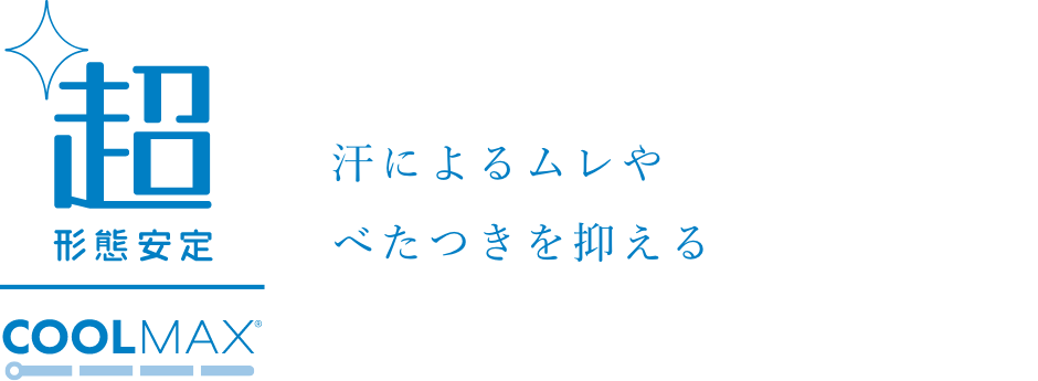 COOLMAX®ファブリックの最大の特徴は優れた「吸水速乾性」です。ポリエステルは適度な疎水性を持ち、水分をほとんど吸収しないため、綿などに比べて速乾性に優れています。吸水力を高めるポイントは、溝を持つ異形断面糸の構造にあります。この異形断面糸は、通常の円形ポリエステル繊維に比べ表面積が広く、水分を素早く吸収することが可能です。高い吸水力と速乾性を兼ね備えているため、汗によるムレやべたつきを抑え、常にドライで快適な着心地を実現します。