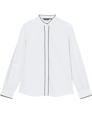 春らしいピンク色のシャツは衿カフス裏の花柄がチラッとみえるのがポイント。