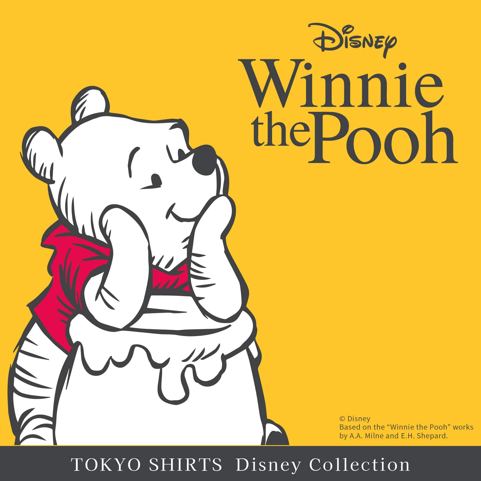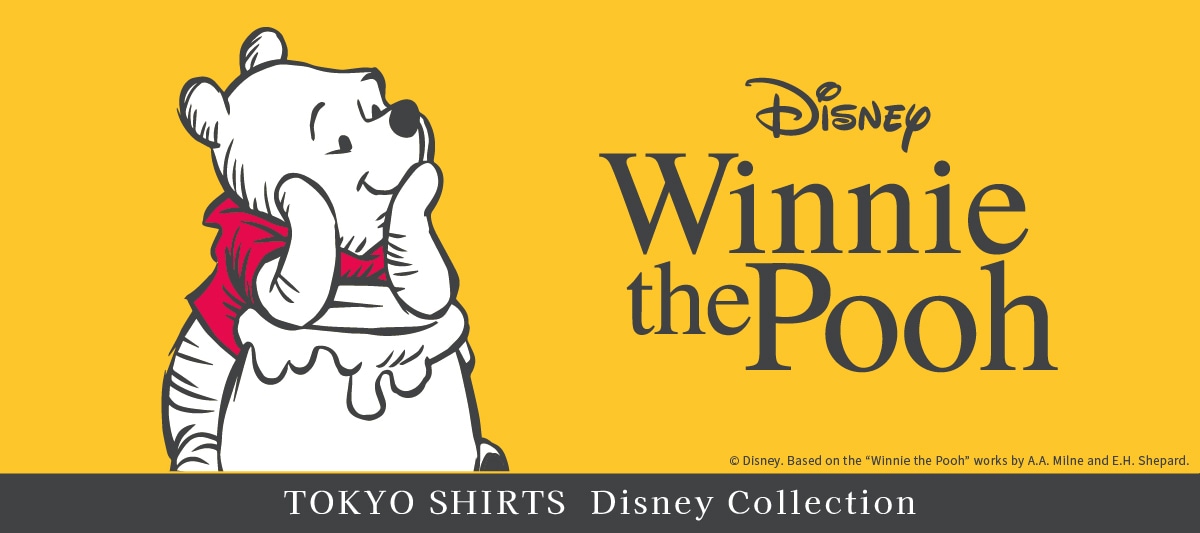 100エーカーの森に住む「くまのプーさん」のデザインシャツ。 ビジネスシーンにもなじみやすいデザインに仕上がりました。 プーさんデザインシャツをきてお出かけしよう!